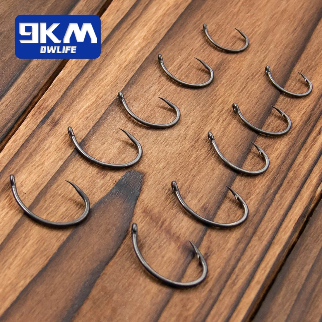 Anzuelos de Pesca de Carpa, Anzuelos de Pesca con Púas/sin Púas, Atado Curvo de Mosca, Anzuelos de Mosca Húmeda, Espacio Ancho, Corriente de Agua Salada