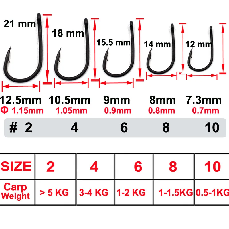 50 Uds. Anzuelos de pesca de carpa Micro púas clásico Boilie gancho con ojo Anti miedo negro tamaño 2 4 6 8 10 anzuelo de carpa