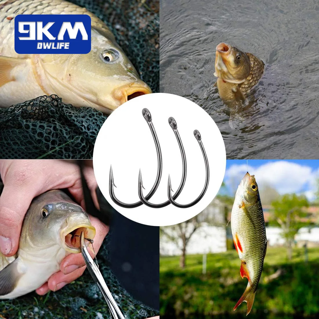 【Alta resistencia】 Estos anzuelos de pesca de carpa están hechos de acero de alto carbono, con alta resistencia a la corrosión y más fuertes que los anzuelos de acero normales.