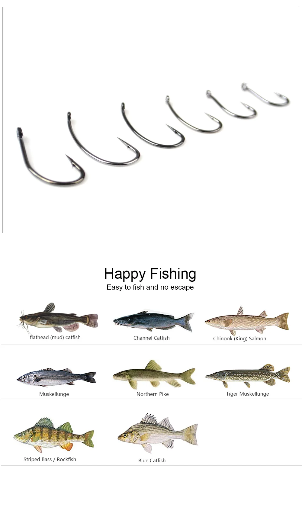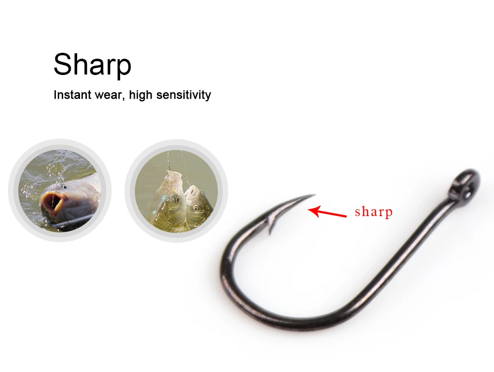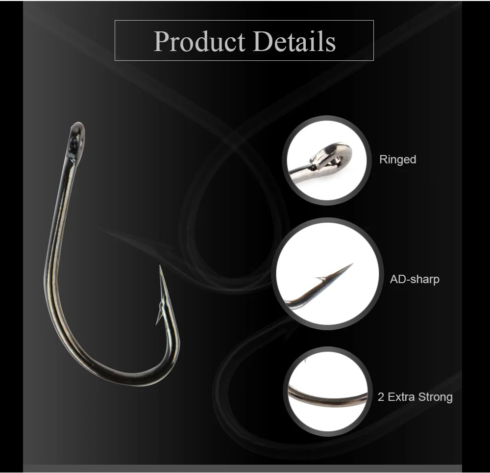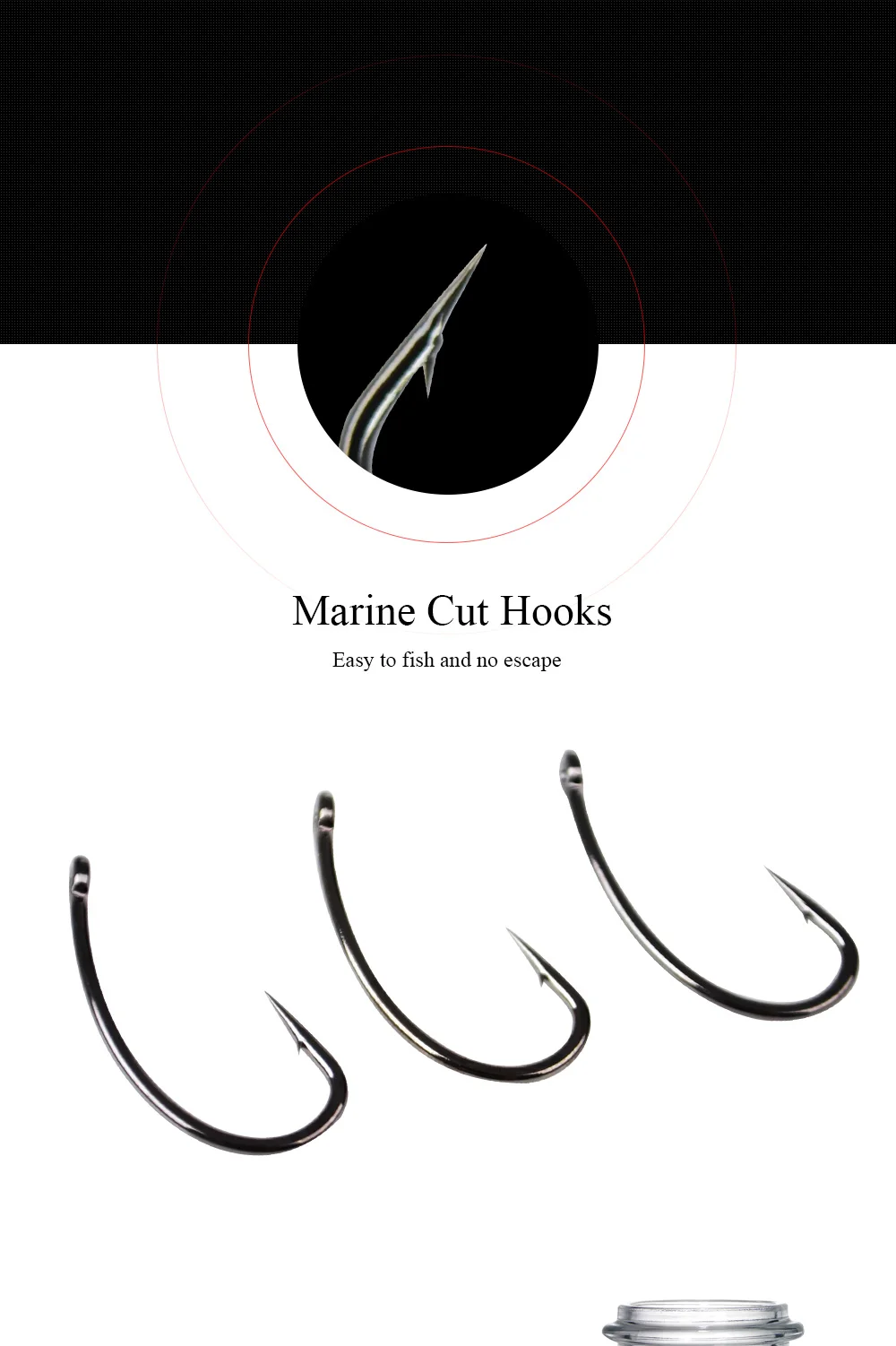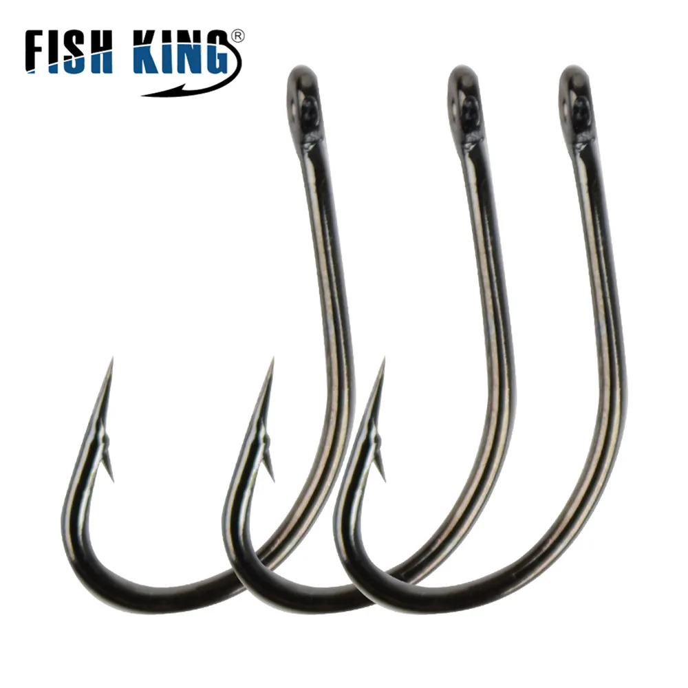 Anzuelos de pesca de carpa de acero al carbono FISH KING, 10 unidades/paquete de púas afiladas con anzuelos de corte marino anillado, bagre de canal bajo