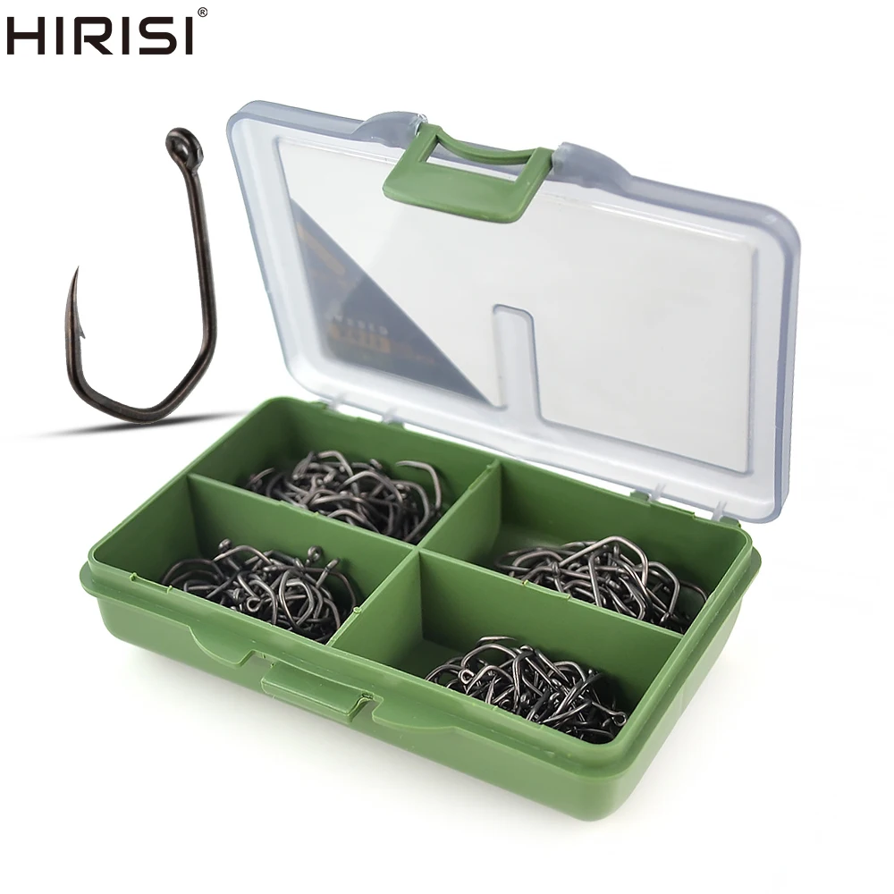 Anzuelos de pesca de carpa de 200, anzuelos de garra de punta de púas, revestimiento de PTFE, anzuelos de Ojos de acero inoxidable de alto carbono con caja