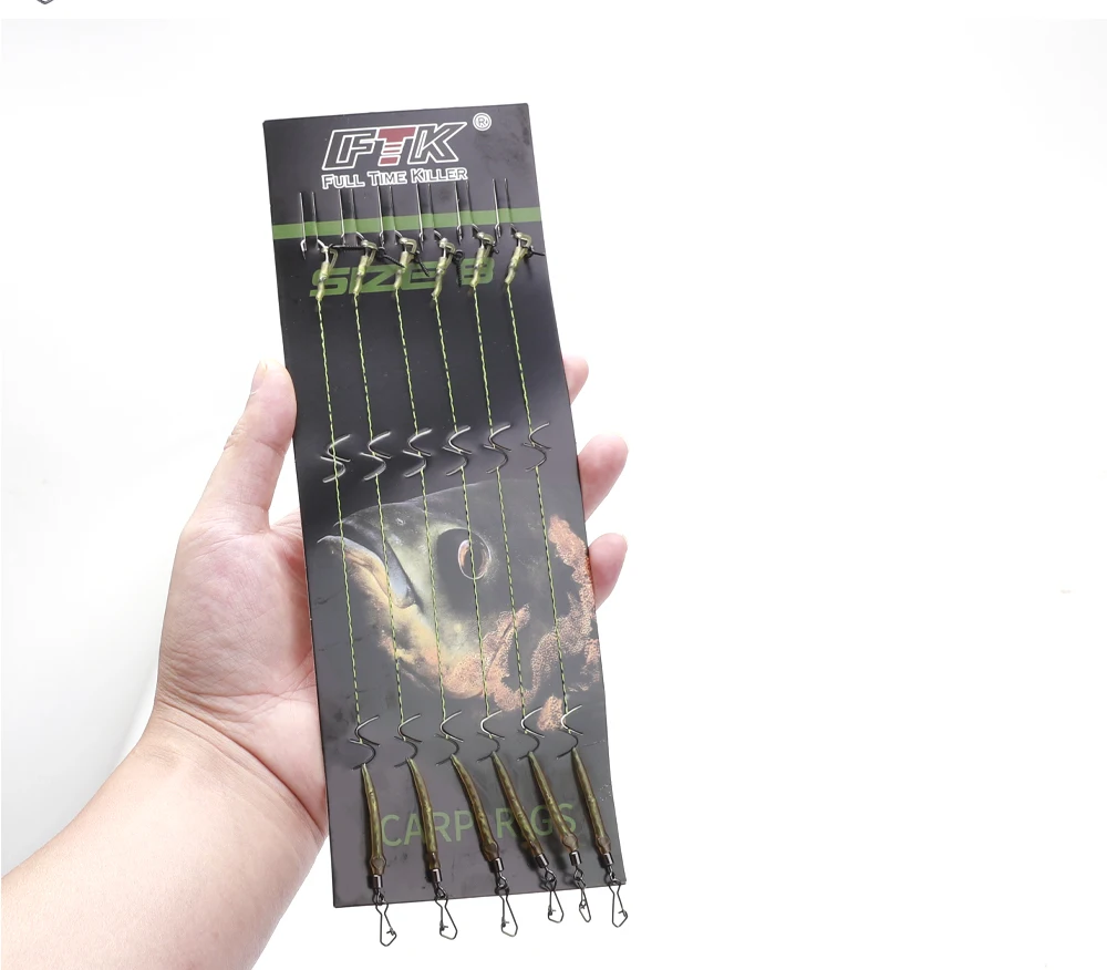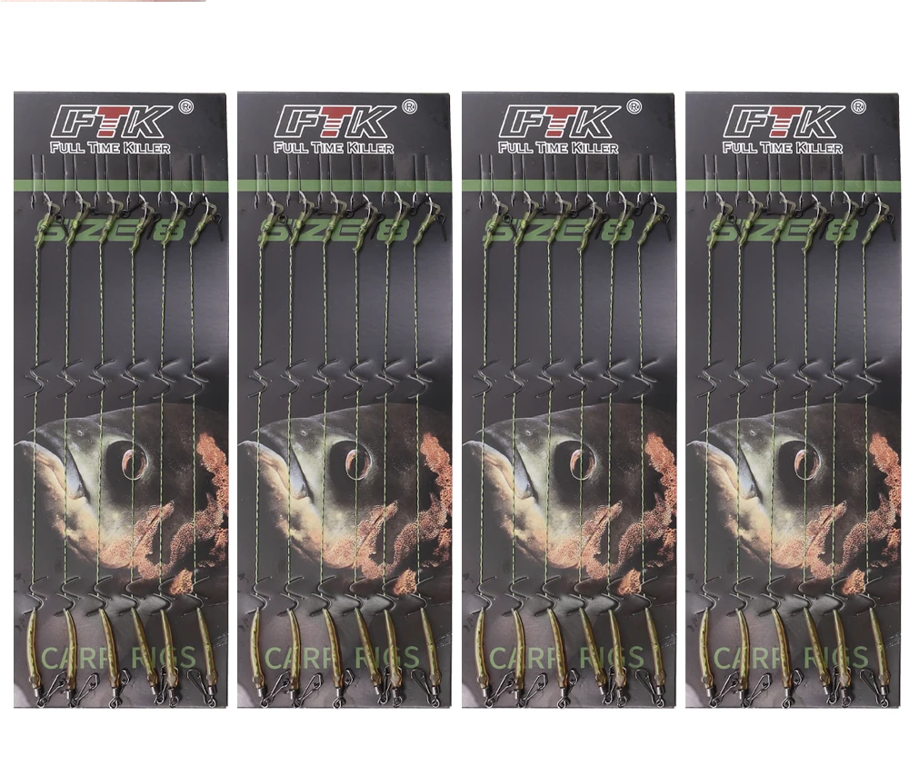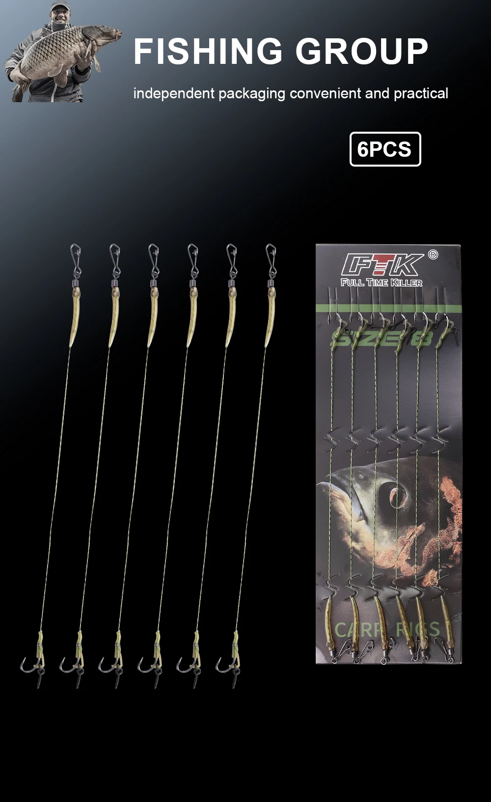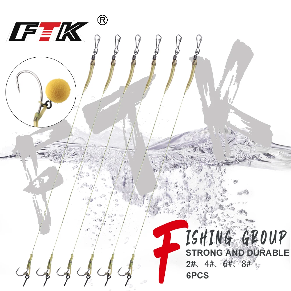 Anzuelos de pesca de carpa FTK 2/4/6/8 # Aparejo de pelo con anzuelo de carpa para carpa, 6 uds., con línea, Boilies listos, cebo, aparejos de pesca de carpa