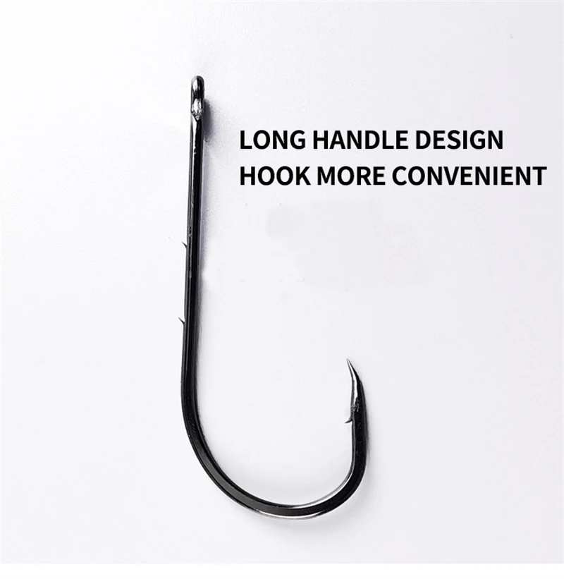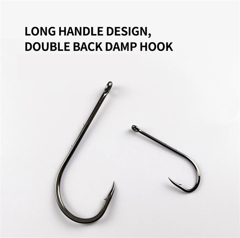 Anzuelos de Pesca de carpa, gancho de mango largo y recto, doble espina trasera, de acero alto en carbono, cebo vivo con púa, 500-1000 piezas