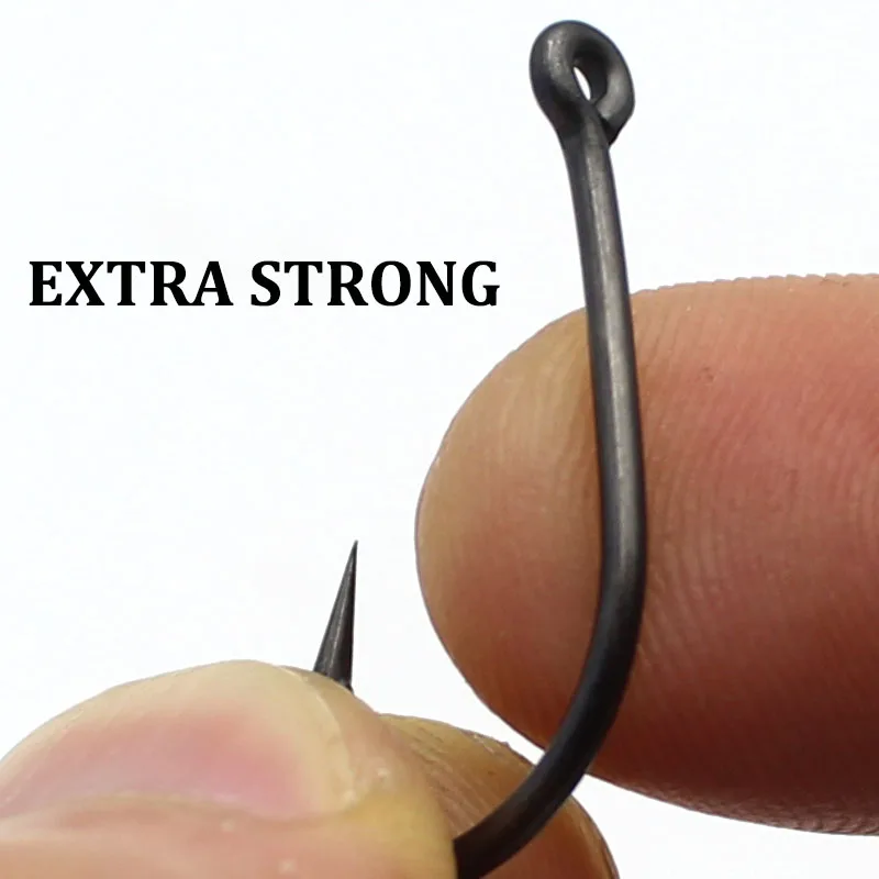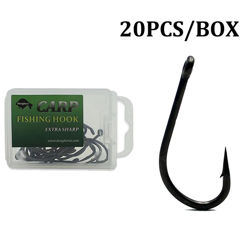 Anzuelos de pesca de carpa de acero inoxidable con revestimiento de alto carbono, paquete de anzuelos de pesca de carpa con caja Original al por menor, tamaño Extra fuerte 1 2 4, 20 unidades