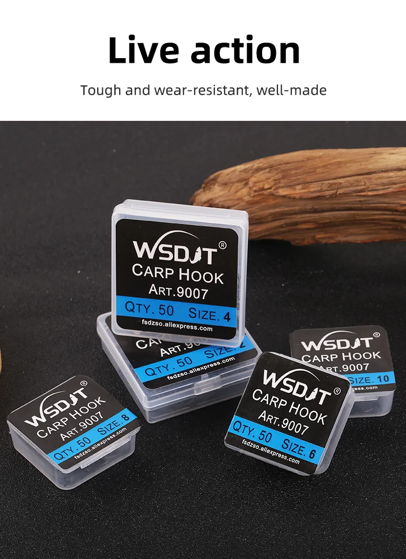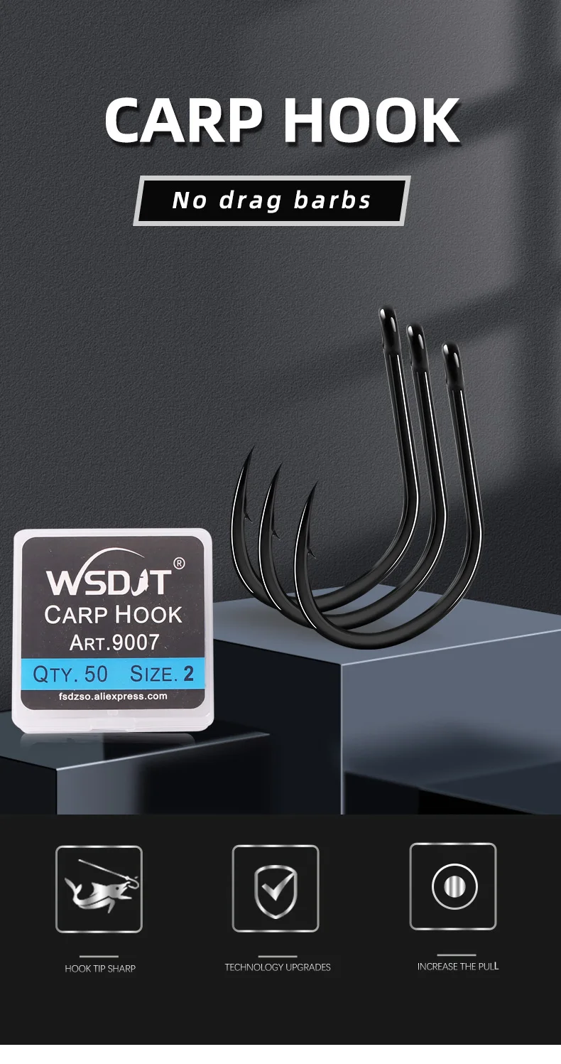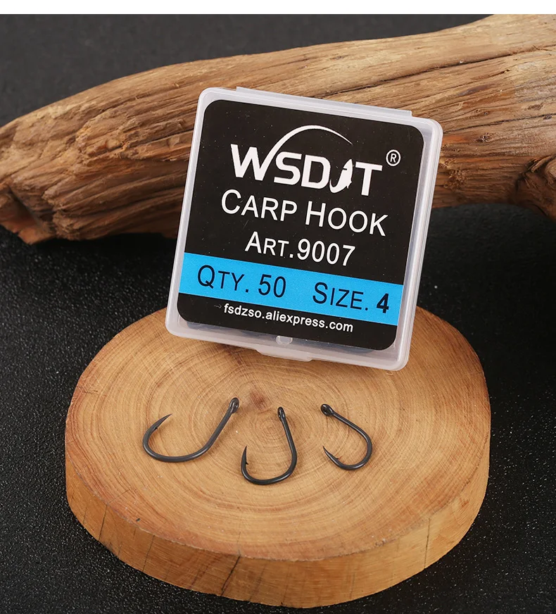 Anzuelos de pesca de carpa recubiertos de púas, diseño de ojo en Japón, hechos con acero de alto carbono 9007, 50 unidades