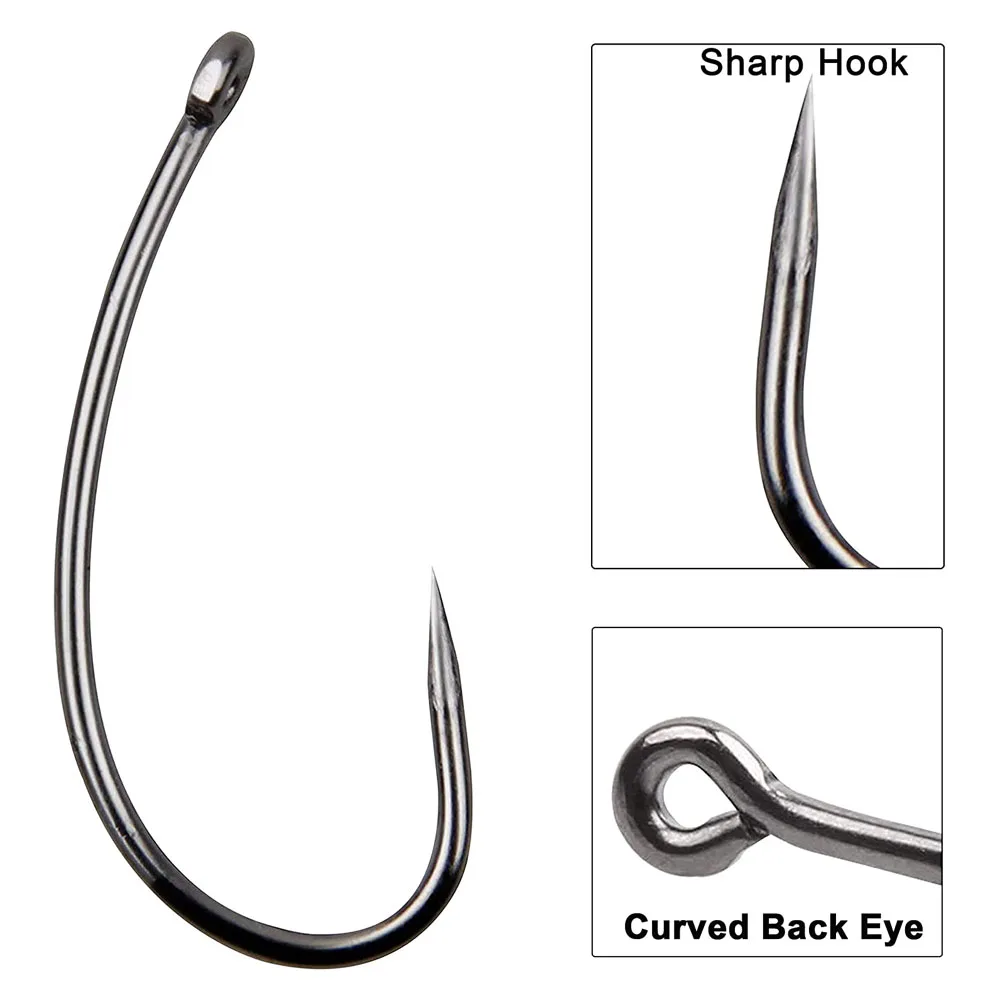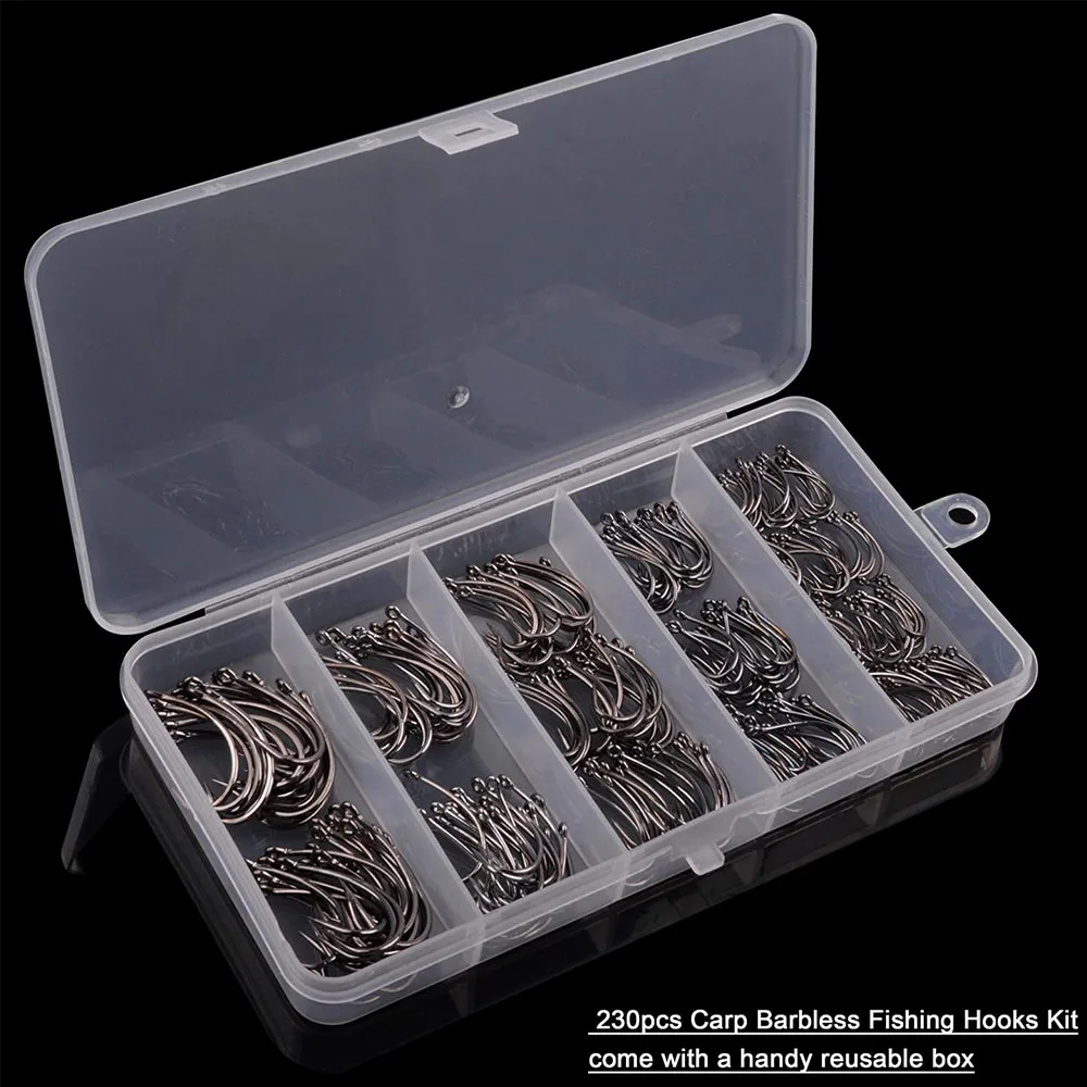 Kit de anzuelos de pesca de carpa sin púas, caña curva sin púas, anzuelo para aparejos de pelo, caja de aparejos de pesca de carpa, 230 unidades/caja