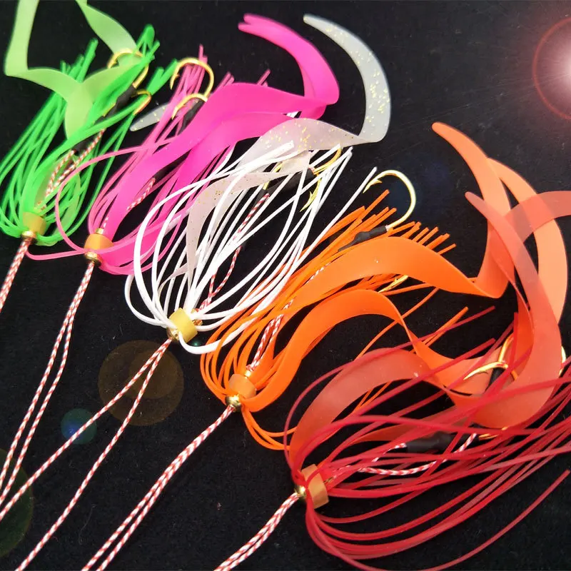 Anzuelos de pesca de caucho salado, falda de silicona con gancho de acero de alto carbono, Señuelos de Pesca, anzuelo de asistencia para Jigging, 50 unidades por lote