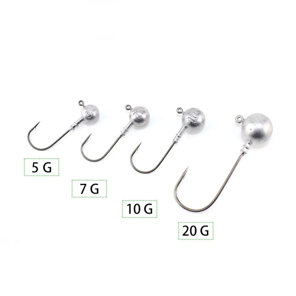 Anzuelos de cabeza de plomo de 5g/7g/10g/20G, acero al carbono para señuelo de pesca suave, cabeza de plantilla, todos los accesorios de pesca.