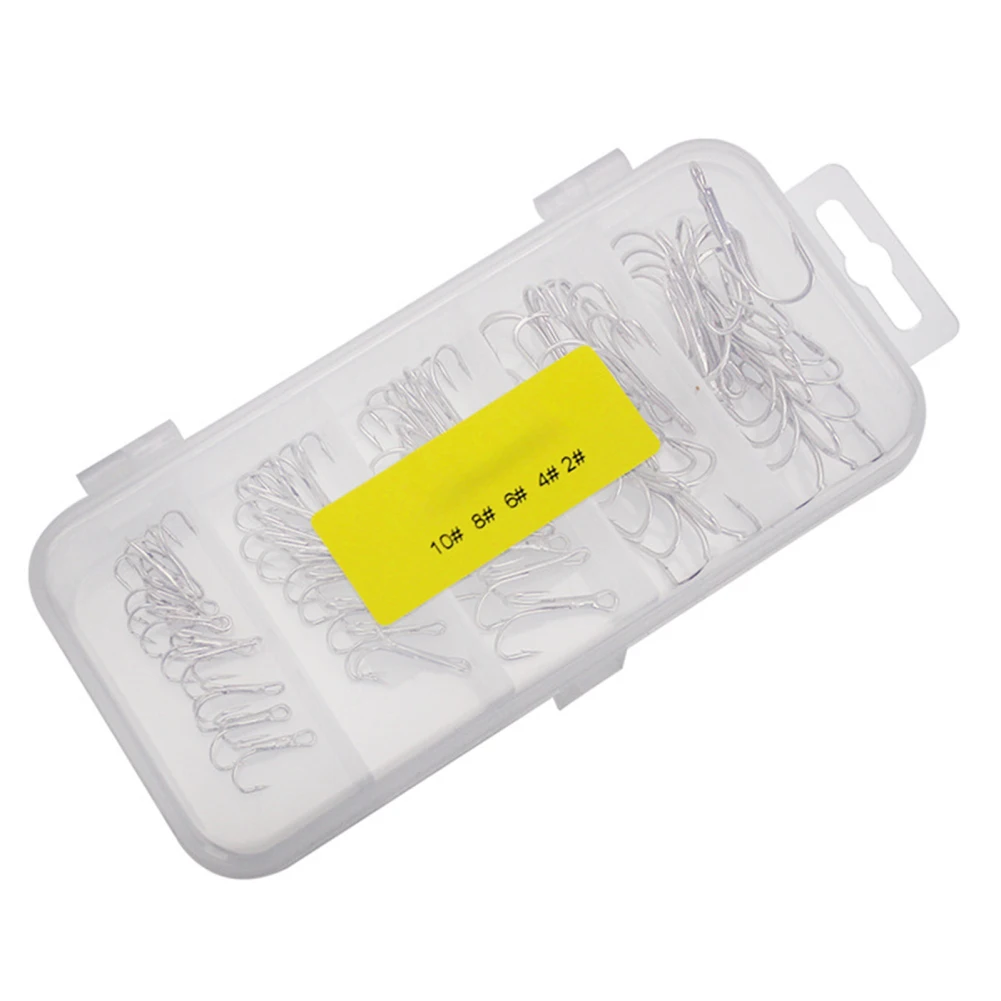 Anzuelos de pesca circulares de 50 piezas 2 #4 #6 #8 #10 # con caja de aparejos para pesca de agua salada y agua dulce