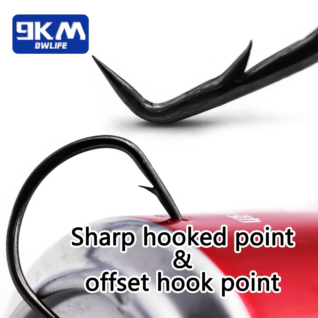 Anzuelos circulares: ponito desplazado extremadamente afilado, púas especiales diseñadas para garantizar que la punta del anzuelo ruine en la esquina de la boca del pez.Tiene un amplio espacio para proporcionar la mejor tasa de conexión.Lo hace perfecto para apuntar a peces más grandes.