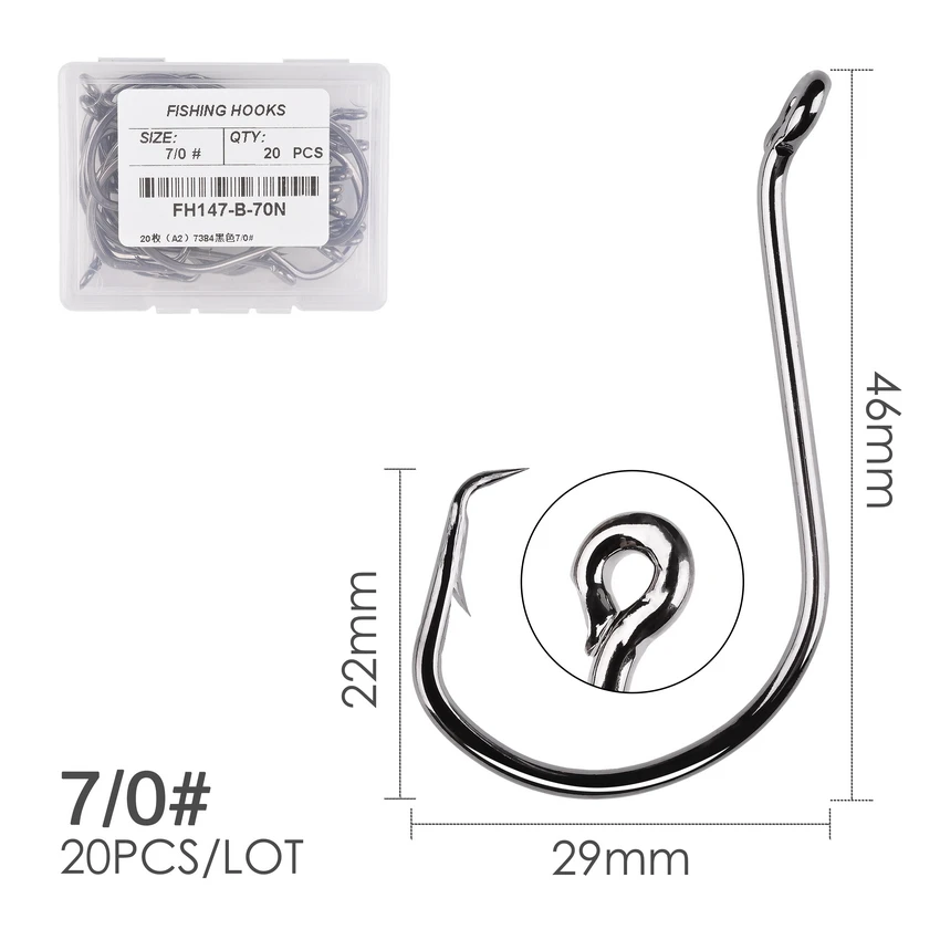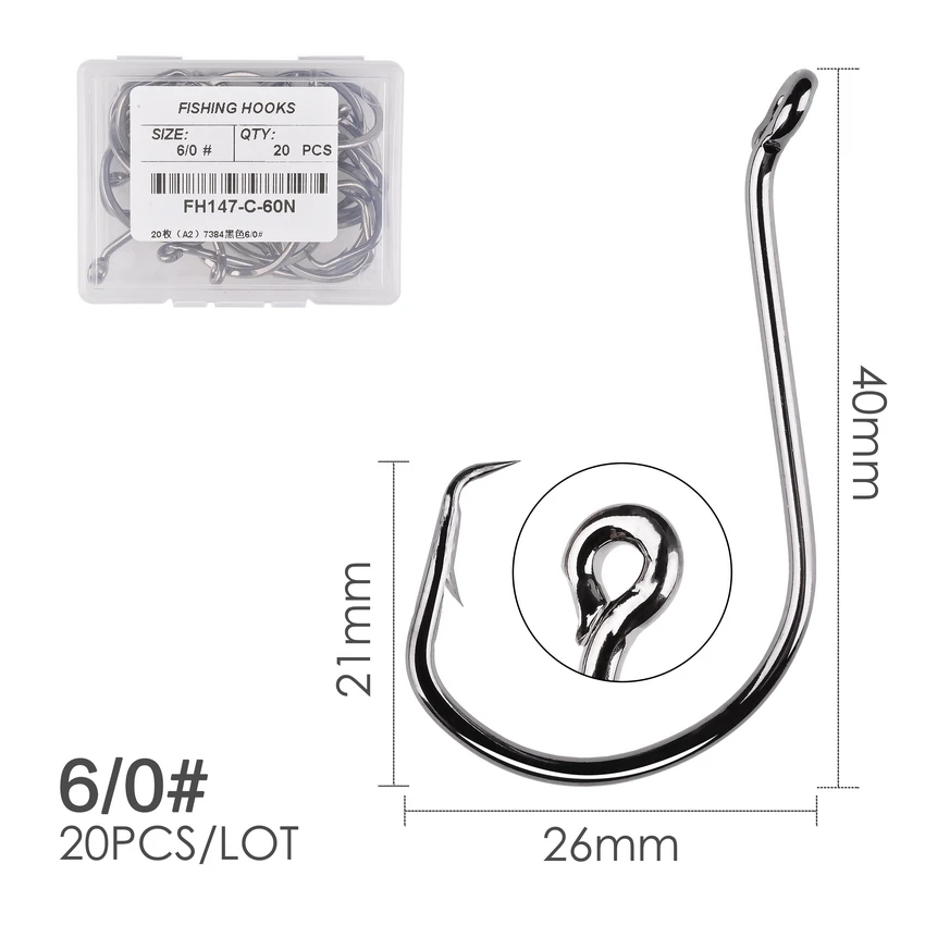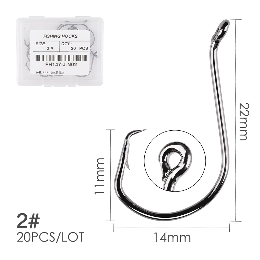 Anzuelos de pesca circulares, plantilla de anzuelo grande con púas, aparejos de pesca de acero al carbono, 20 unids/caja