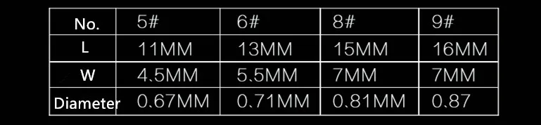 Longitud del gancho: 11 mm 13 mm 15 mm 16 mm
