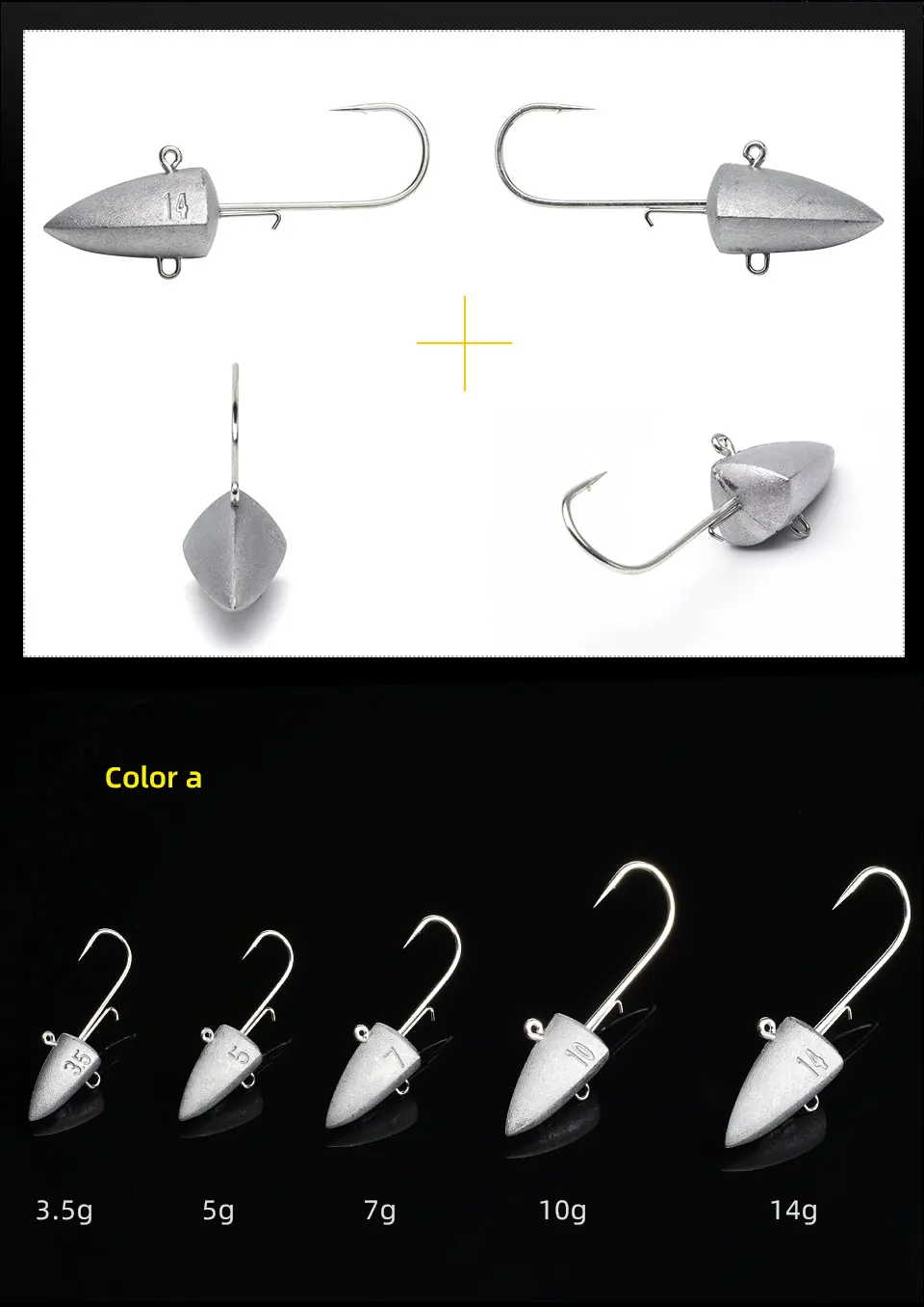 Anzuelos de pesca con dardo de 10 piezas, 3,5g, 5g, 7g, 10g, 14g, 21g, 28g, señuelo de gusano, cabeza de plantilla, cebo Artificial, aparejos de pesca