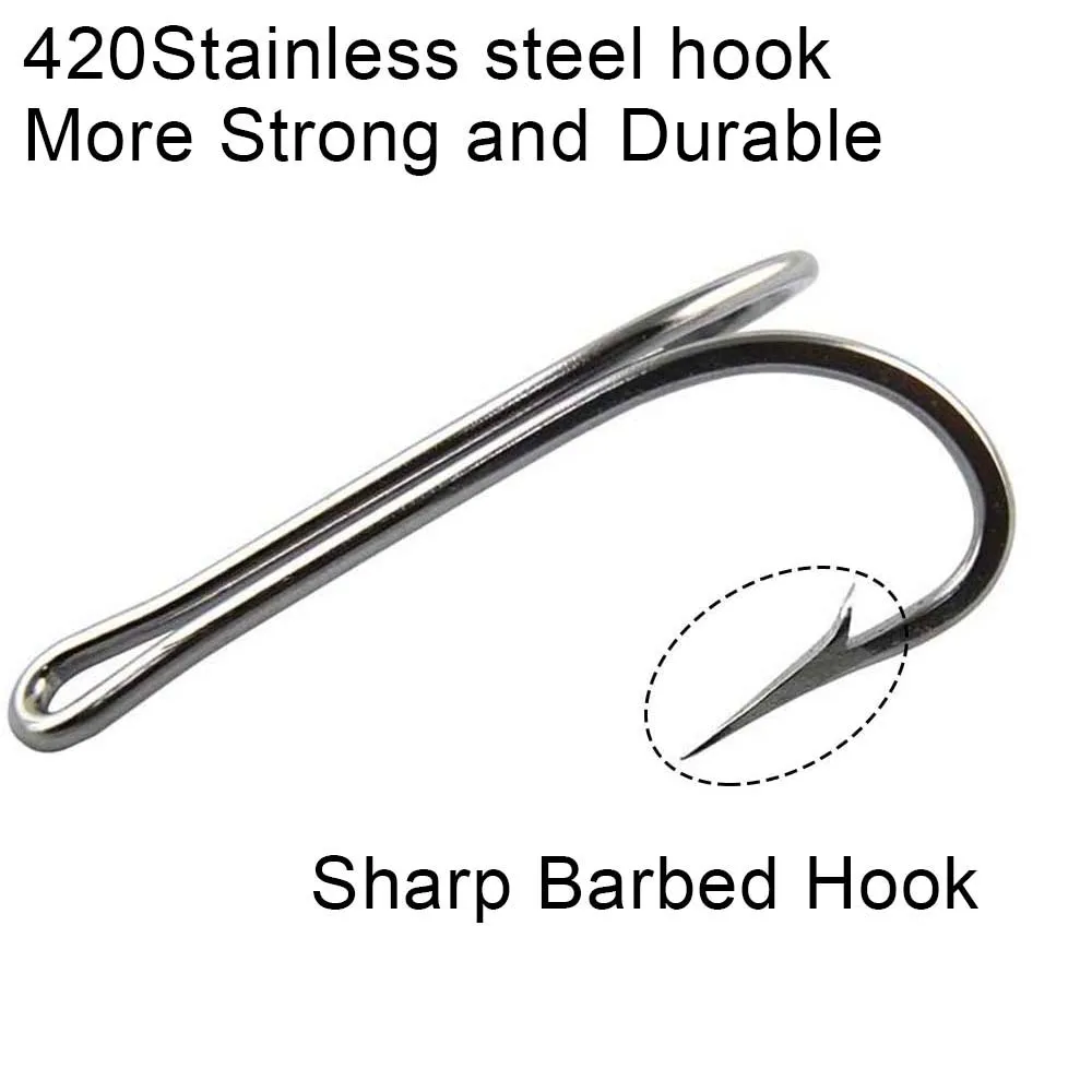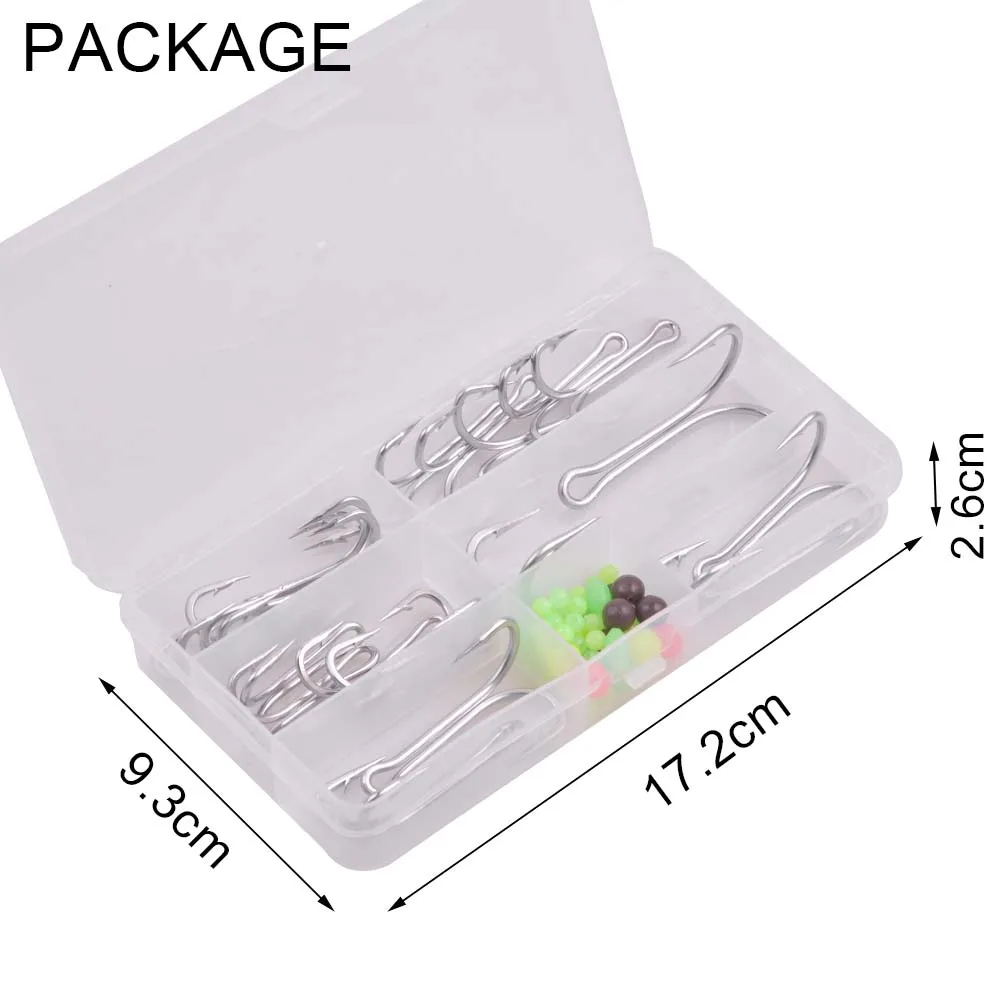 Anzuelo de pesca doble de acero inoxidable 51 unids/caja, anzuelo de púas con caja de aparejos