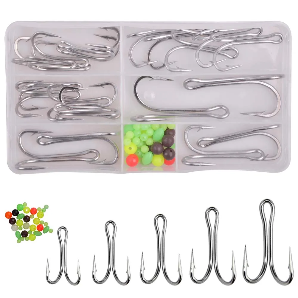 Anzuelo de pesca doble de acero inoxidable 51 unids/caja, anzuelo de púas con caja de aparejos