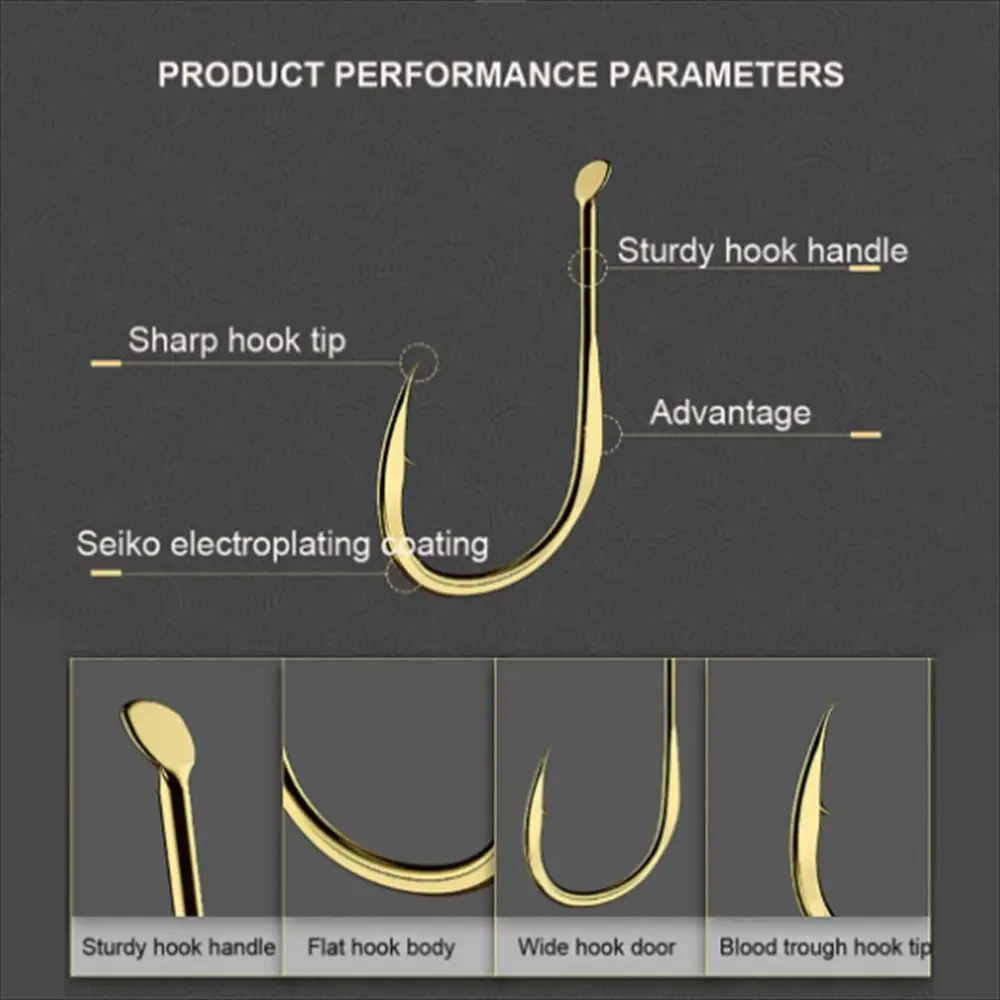 Nombre: anzuelos de pesca Material: acero de alto carbono Modelo: 0,5 #/0,8 #/1 #/2 #/3 #/4 #/5 #/6 #/7 #/8 #/9 # Color: dorado Cantidad: lista de paquetes: anzuelo de pesca de tipo 1. Características: 1. La punta del anzuelo se pule y aplana repetidamente para garantizar que la punta del anzuelo permanezca afilada. 2. La parte del asa del gancho es simétrica y el arco es liso, por lo que no rayará la línea al atrapar peces. 3. La lengüeta reduce la posibilidad de que el anzuelo se desenganche y es un arma para que los pescadores atrapen peces grandes. 4. Para evitar que el anzuelo se enderece o se rompa después de atrapar un pez grande, se realiza un aplanamiento preciso de acuerdo con el grado de flexión de las diferentes formas para garantizar la dureza y la resistencia del anzuelo.