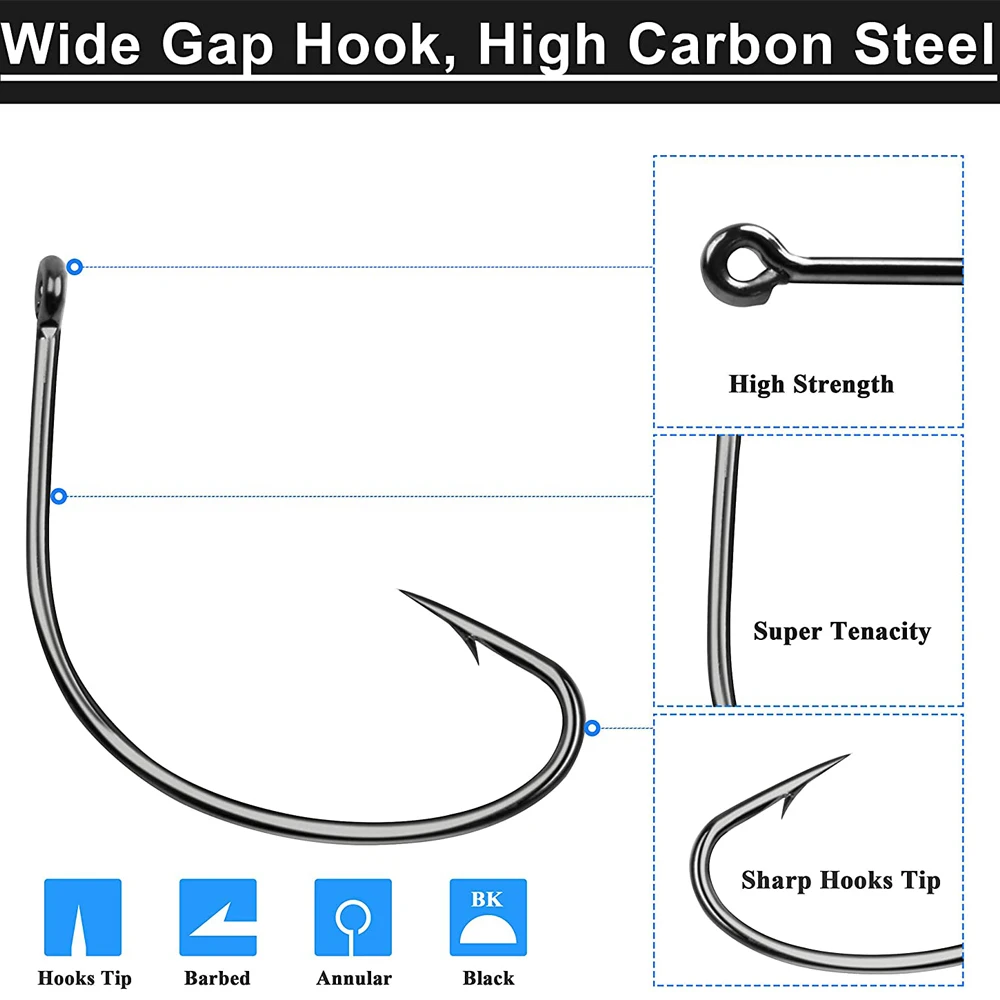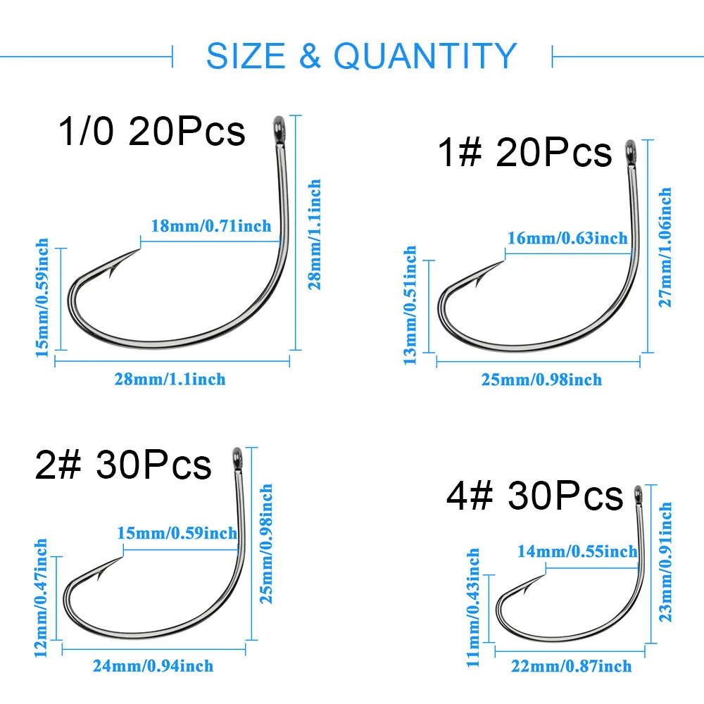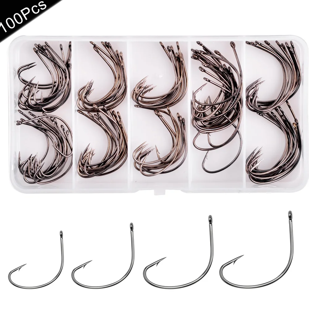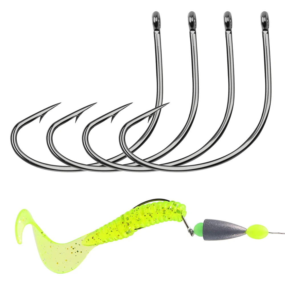 100 Uds. Anzuelos de pesca Offset Wacky Neko Rig, anzuelos de cebo de gusano blando para trucha de lubina, anzuelos de agua salada