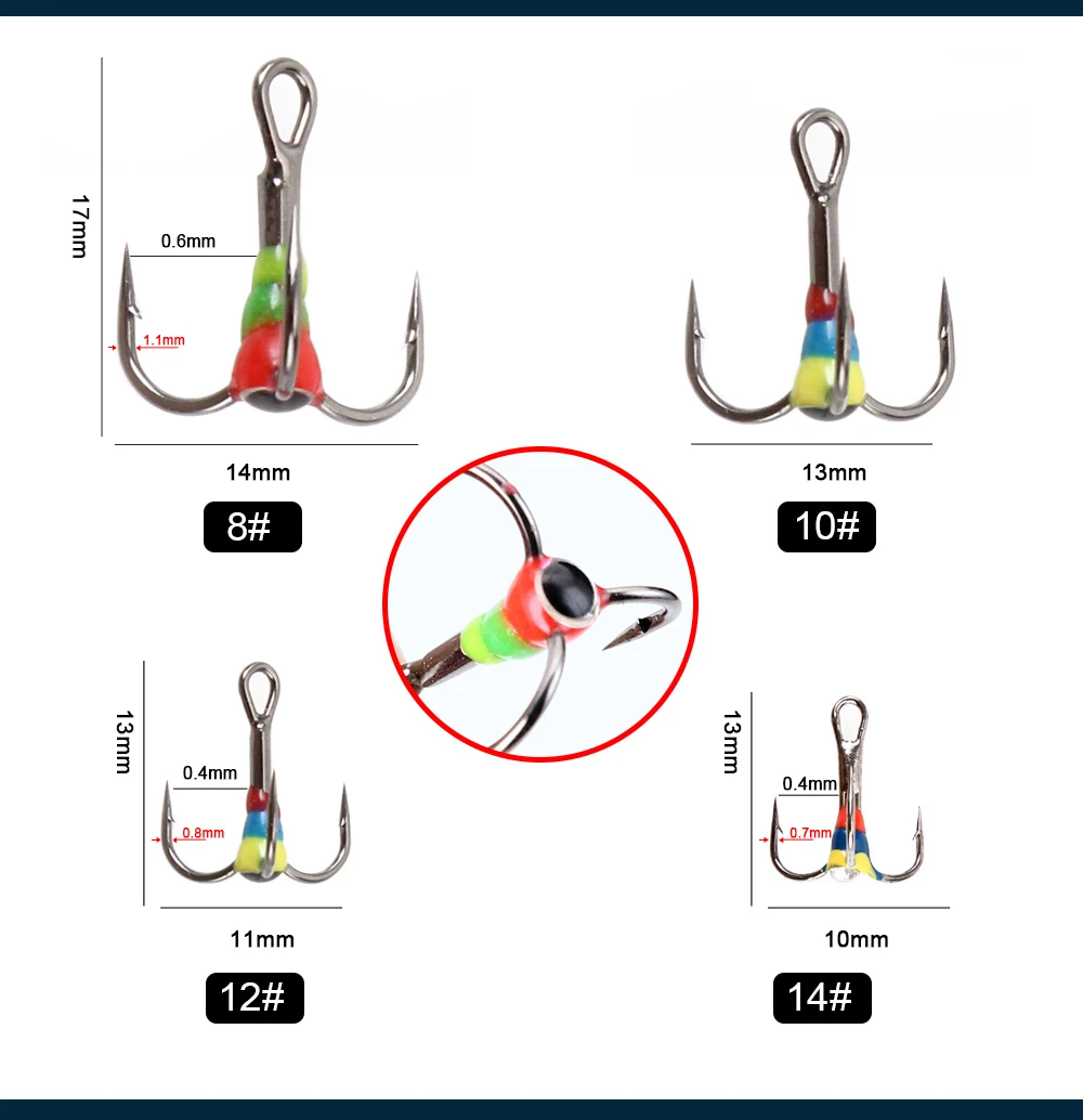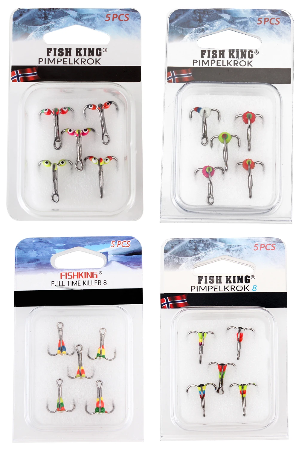 Anzuelos de pesca en hielo de acero alto en carbono para invierno, anzuelos afilados con púas, anzuelos triples con ojo de diamante, aparejos de pesca, 5 unids/paquete