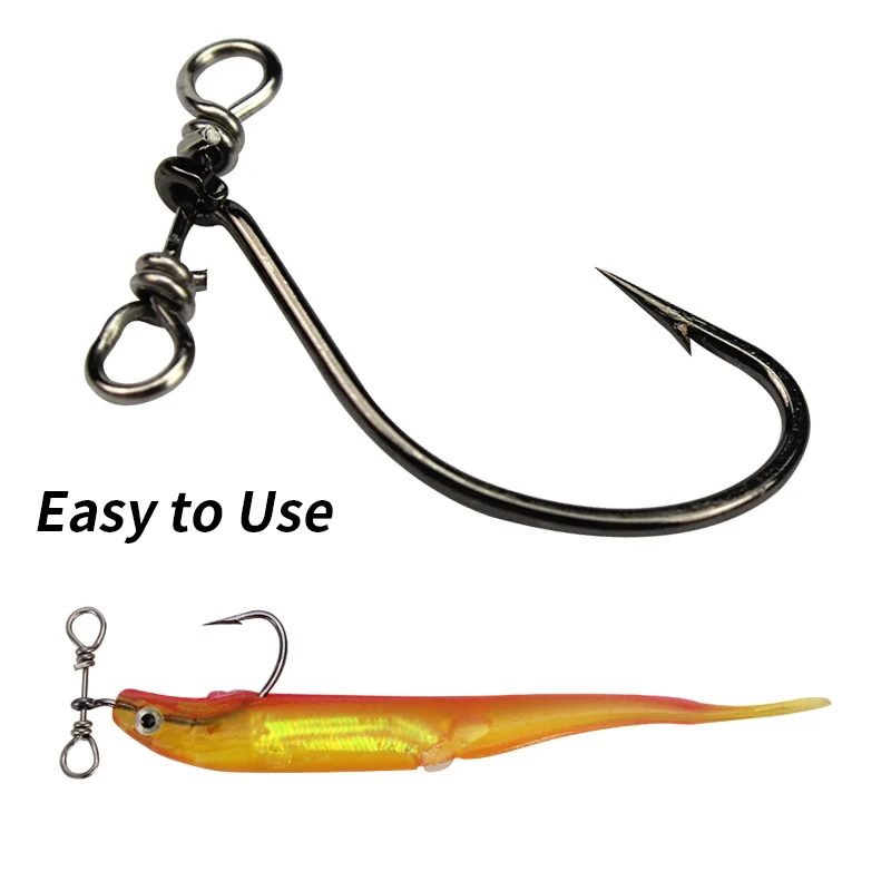 3. El Dispositivo de granallado integrado y el dispositivo giratorio permiten que el anzuelo gire 360 grados completos sin torcer la línea de pesca y permiten que el cebo se balancee libremente alrededor de la caña de pesas.