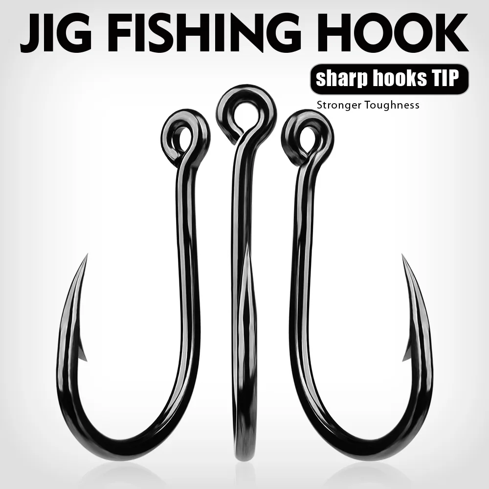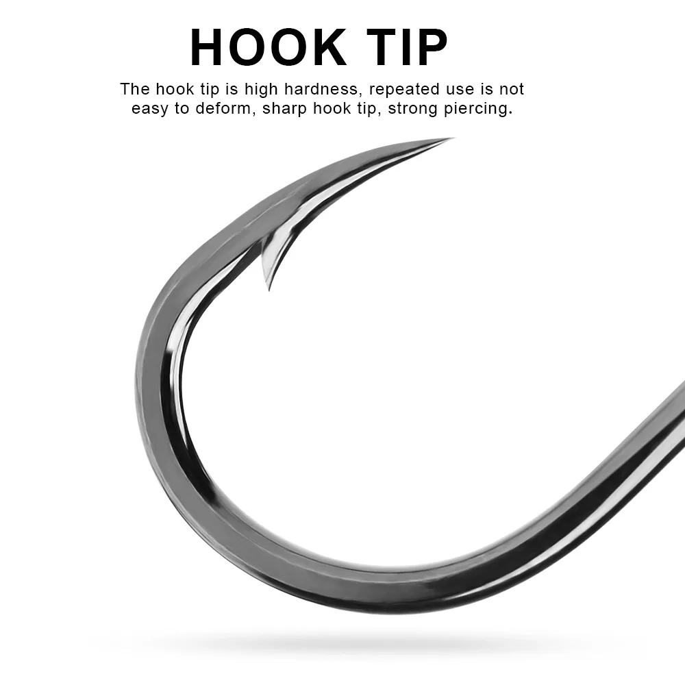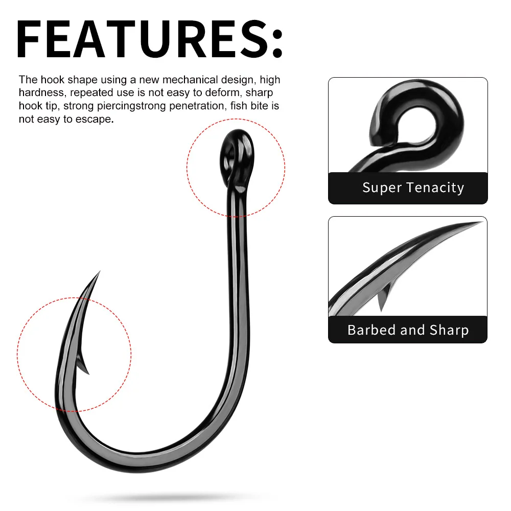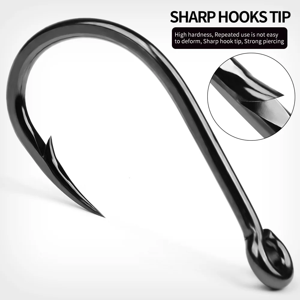 Anzuelos de pesca con forma de ojo de tubo de púas de acero rico en carbono, 10 Uds., con anillado, Surf en agua salada, roca para pesca en el mar, pez de juego grande en alta mar