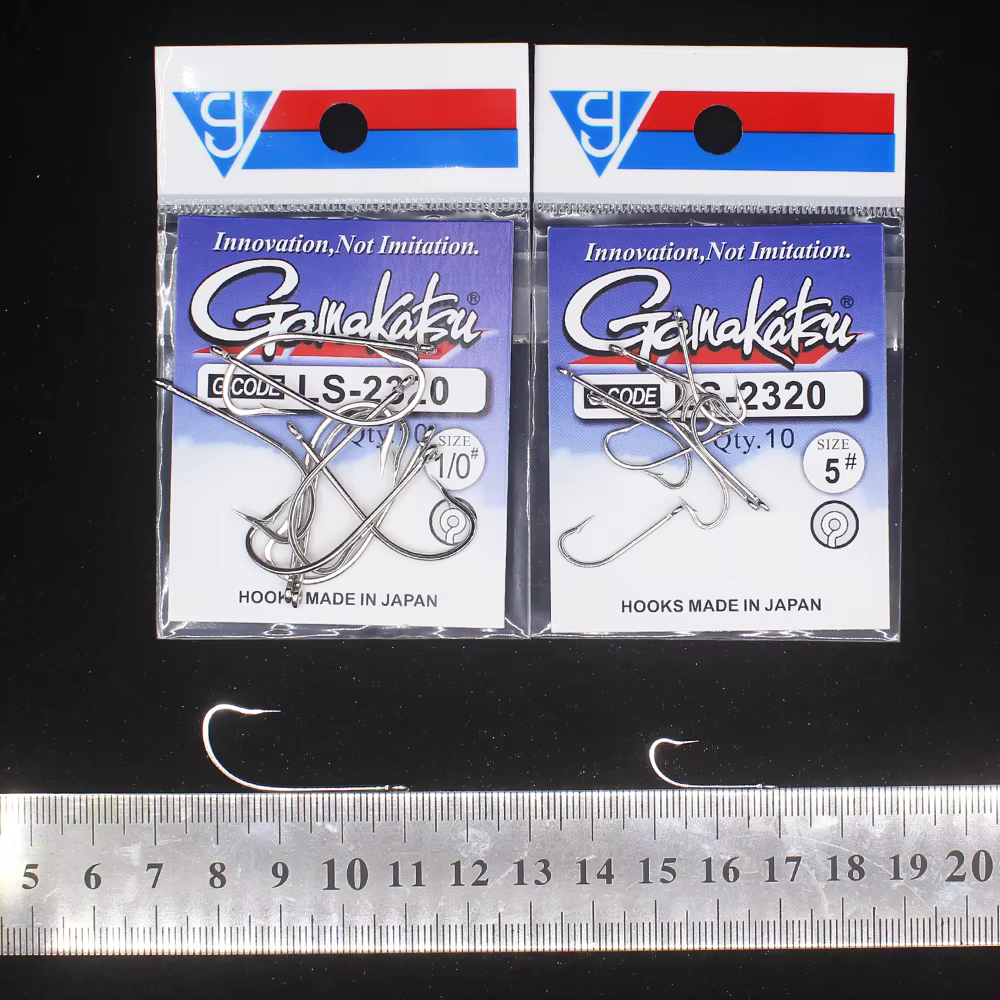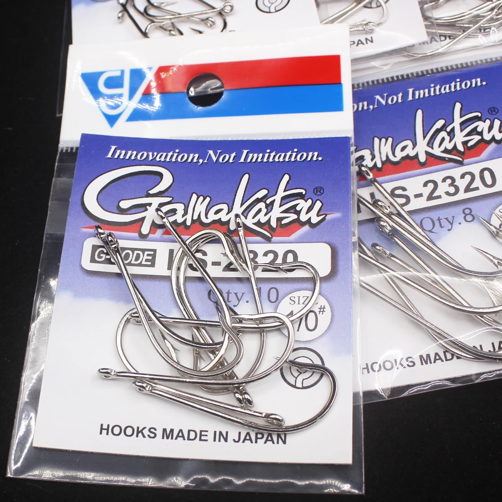 Anzuelos de pesca Gamakatsu 2320 blancos 5/0 # -5 # Anzuelos de pesca con anillas de mar, agua salada, acero rico en carbono, púas afiladas, venta al por mayor