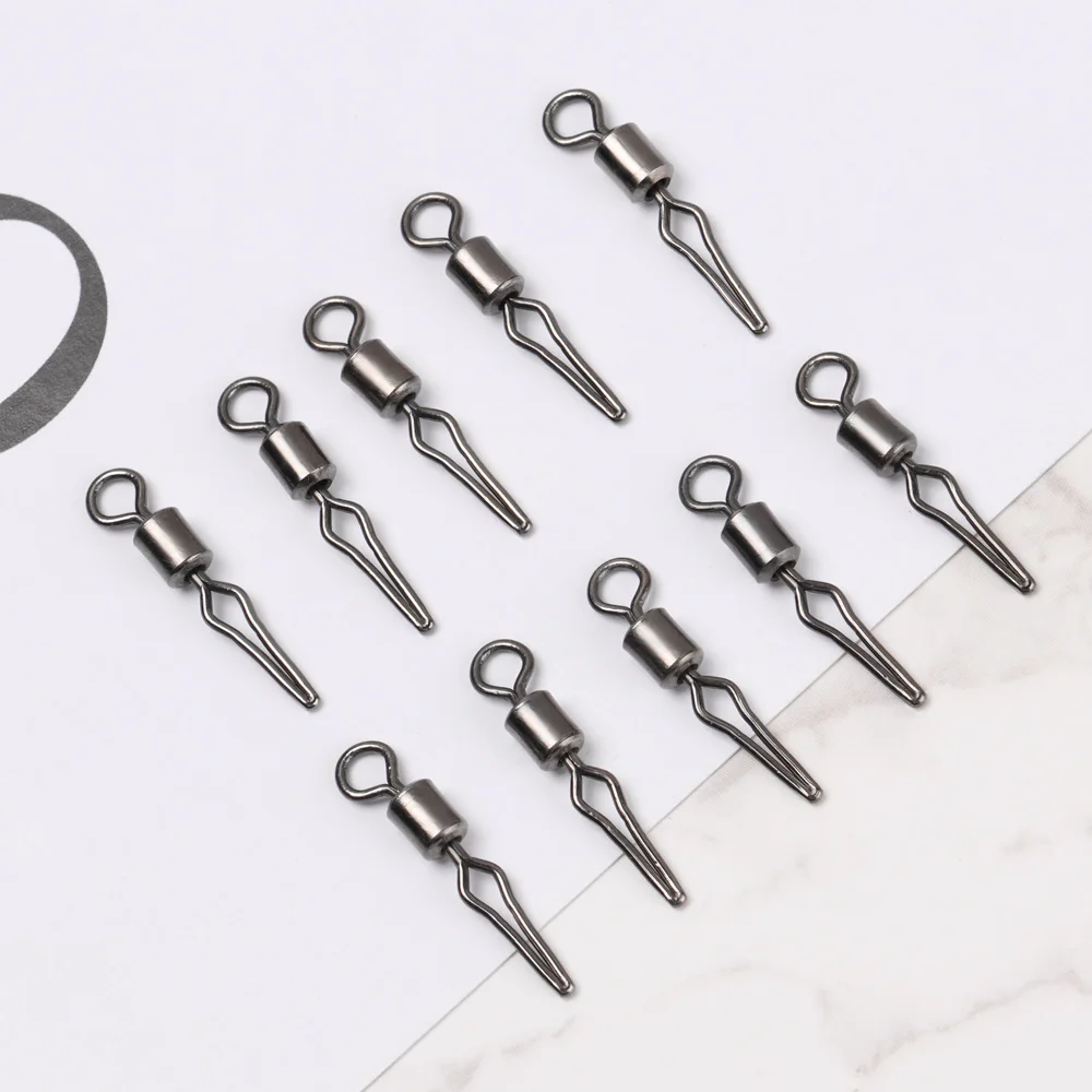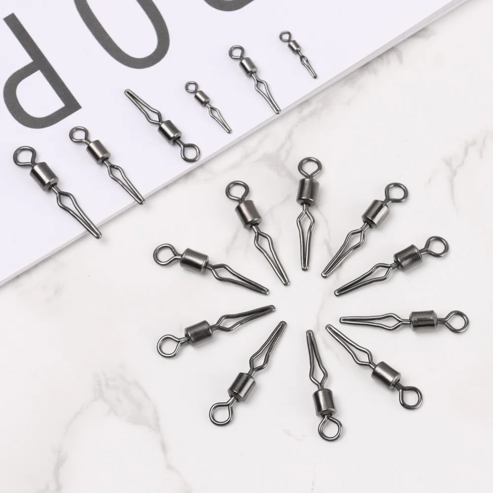 Estas innovadoras juntas giratorias cuentan con un ojo redondo estándar en un extremo y un ojo de clip de alambre inteligente en el otro. A menudo se encuentran moldeados en contrapesos, estos giros le permiten usar cualquier peso que tenga su plataforma y cambiarlos rápidamente según lo requiera la situación.