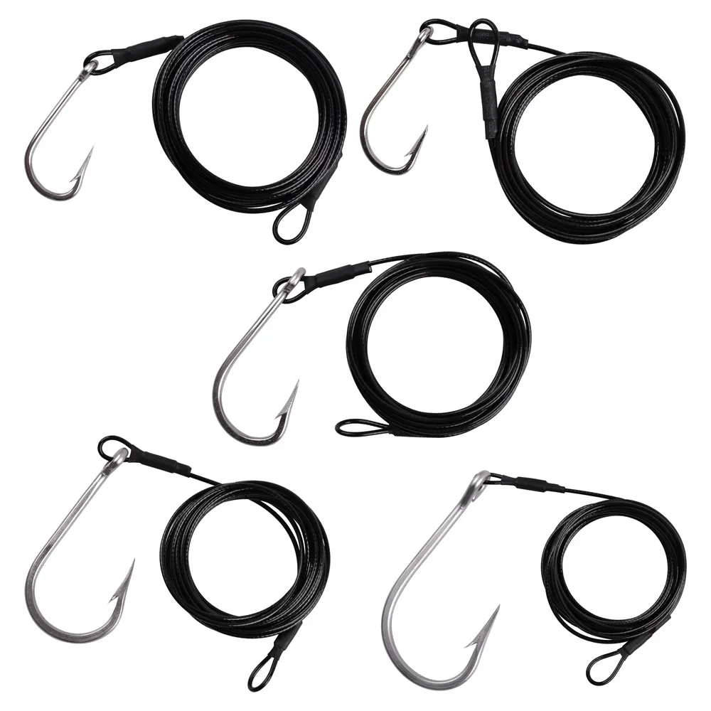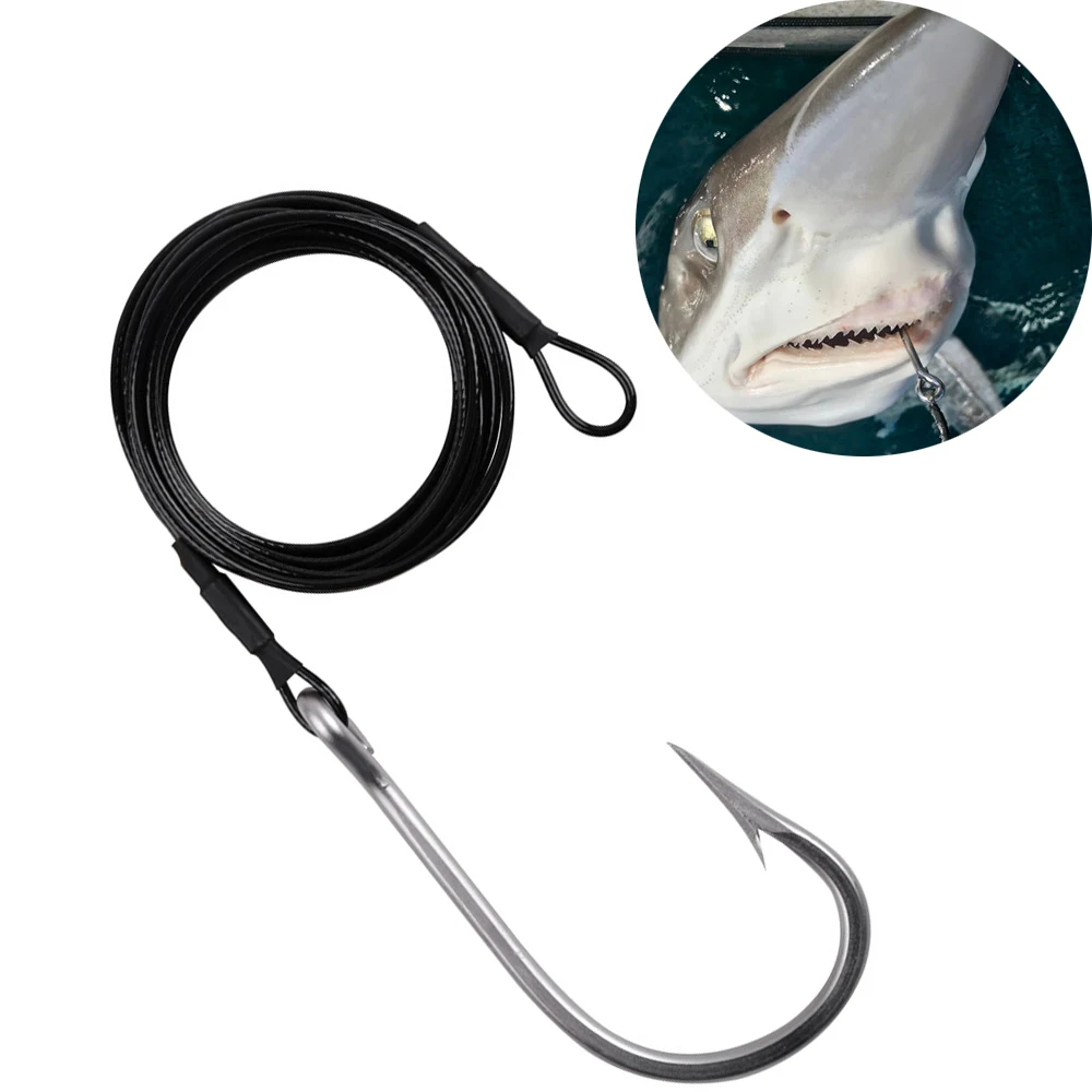 Anzuelos de pesca de gran juego, 400LB, aparejos de plantilla de atono de fundición, Cable recubierto de nailon, líder de alambre de acero, anzuelos dentados de tiburón de agua salada