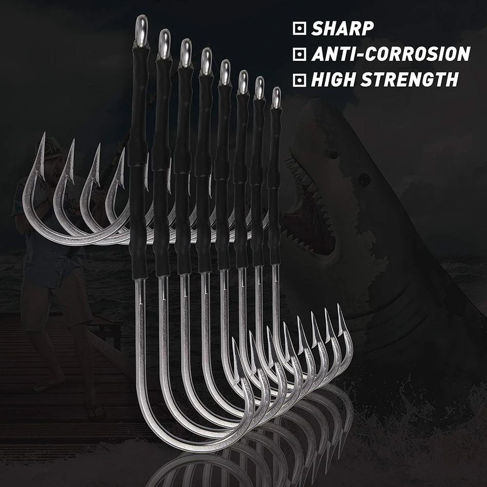 1. Hecho de acero inoxidable 420, vástago forjado, de alta resistencia y anticorrosión. Con punta de aguja químicamente afilada, muy afilada. El anzuelo de atún tiene una lengüeta de longitud moderada, menos posibilidades de perder peces.
