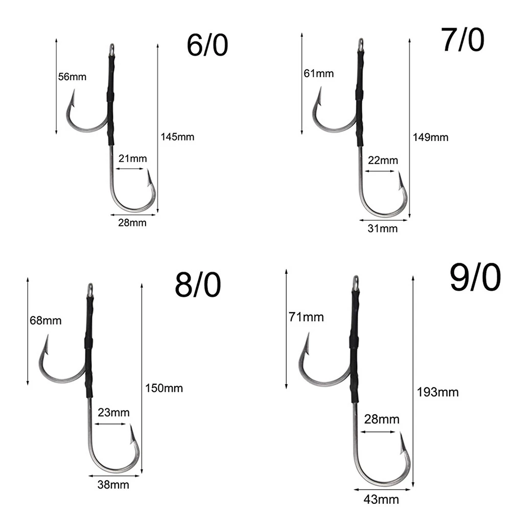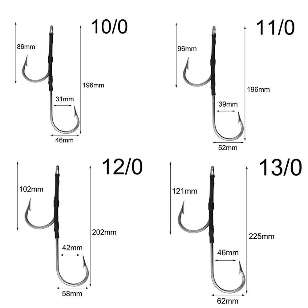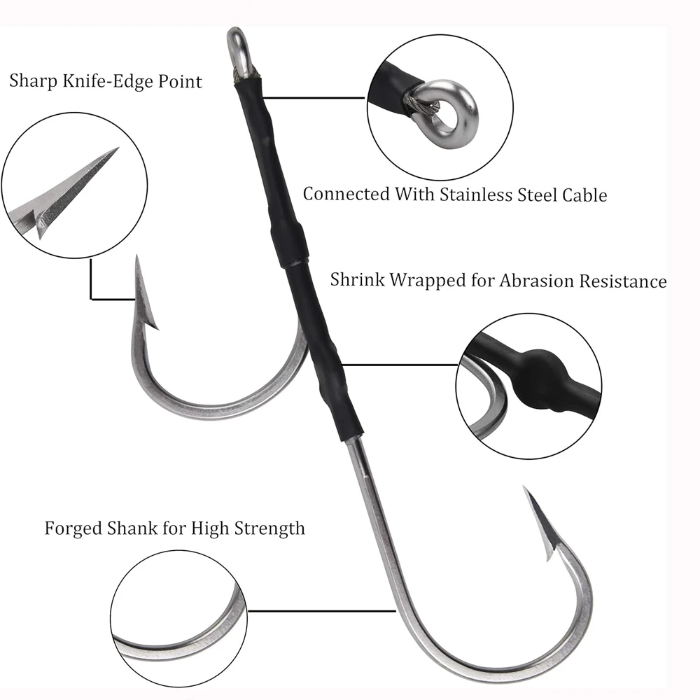 3. Ganchos de asistencia para jigging de alta resistencia, aparejo de doble gancho atado hacia arriba, ganchos de aparejo de cable de acero para trolling y chunking, ideal para Wahoo, atún, marlin y más.