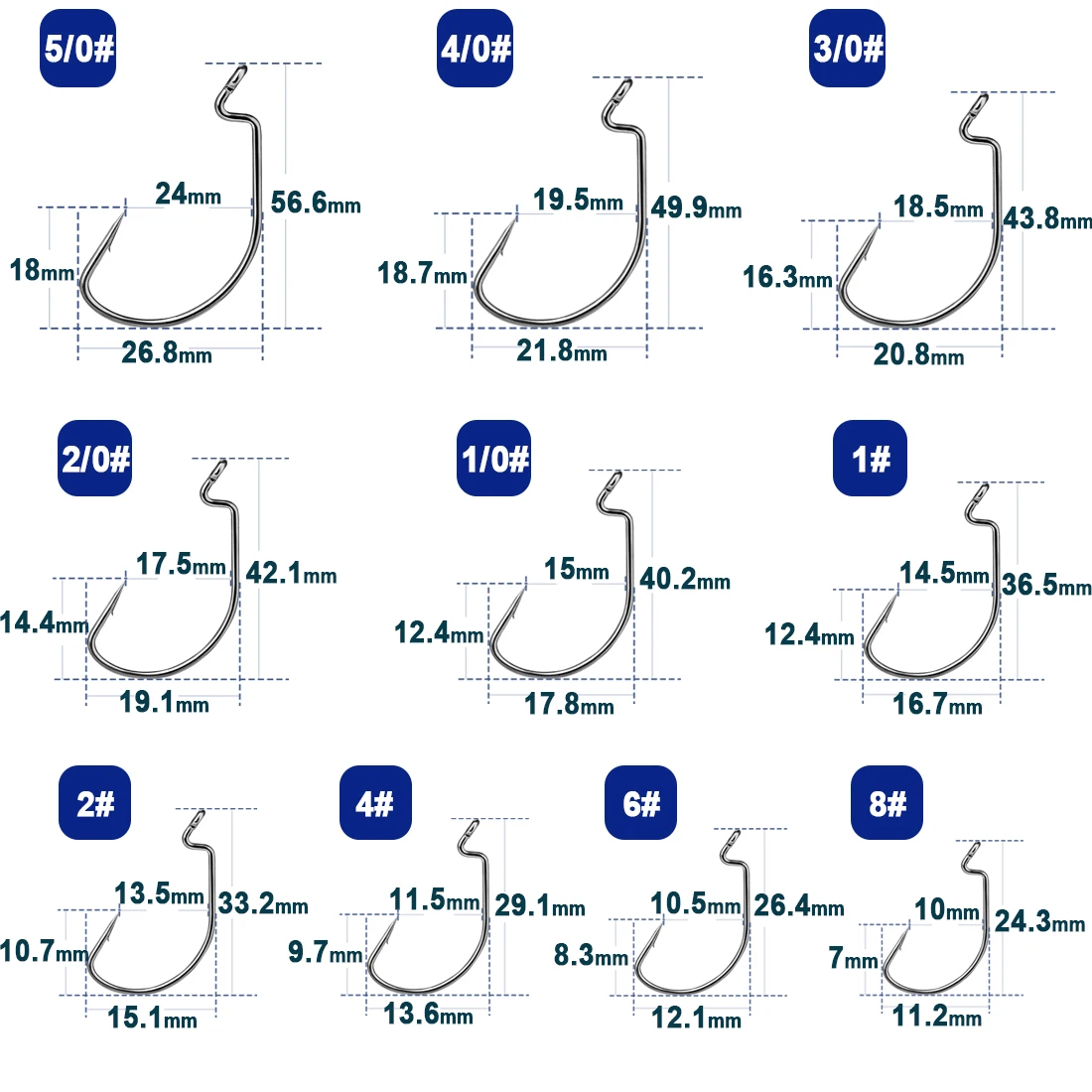 Múltiples tamaños: 10 tamaños diferentes (8 # a 5/0 # ) para adaptarse a sus múltiples aplicaciones de pesca que garantizan el placer de continuar pescando. Servicio posventa: si tiene alguna pregunta, comuníquese con nuestro servicio de atención al cliente, resolveremos su problema dentro de las 24 horas.