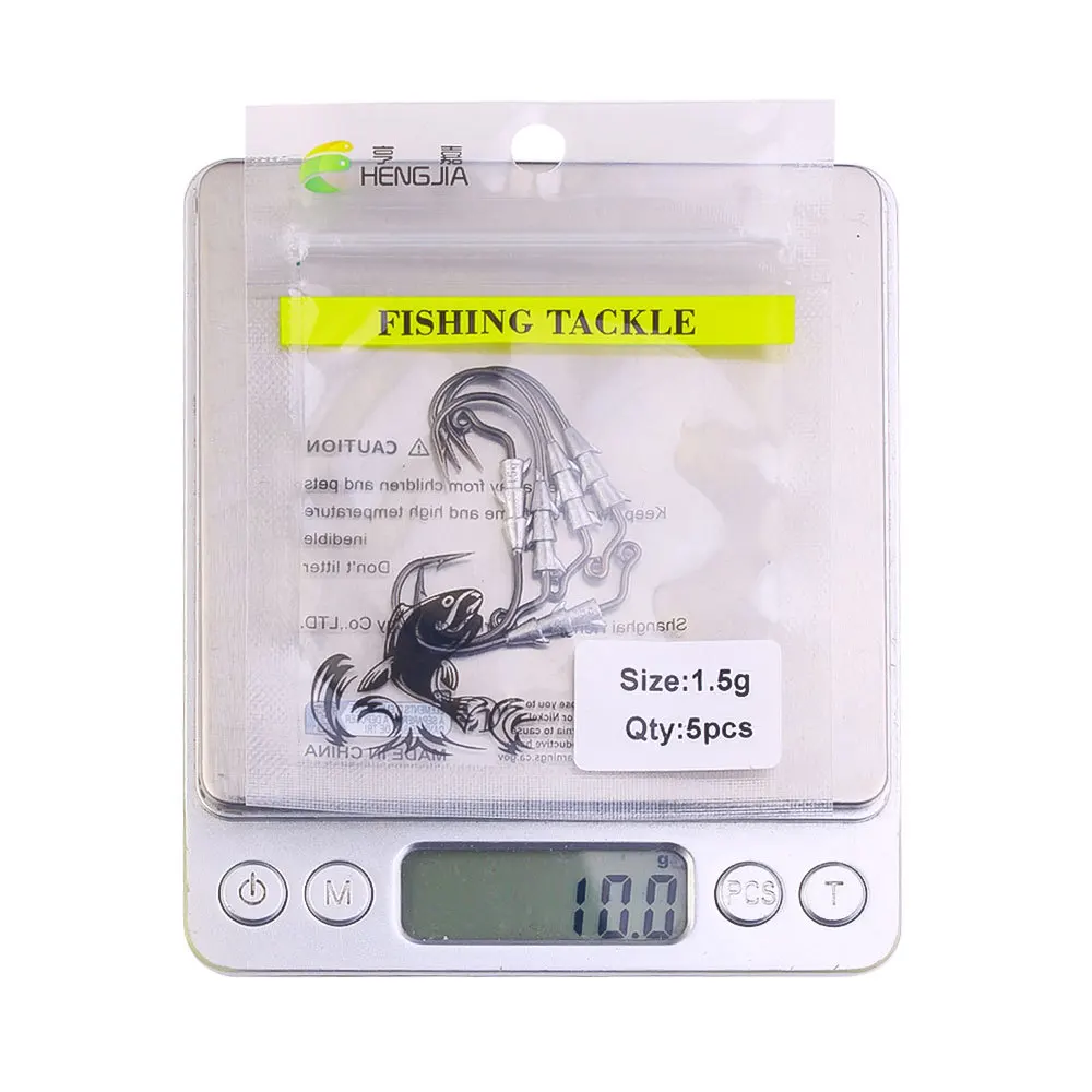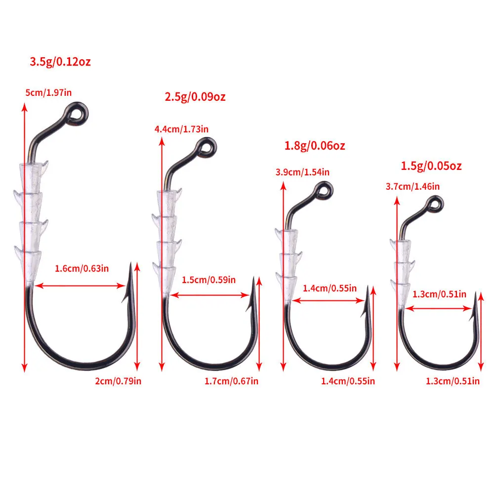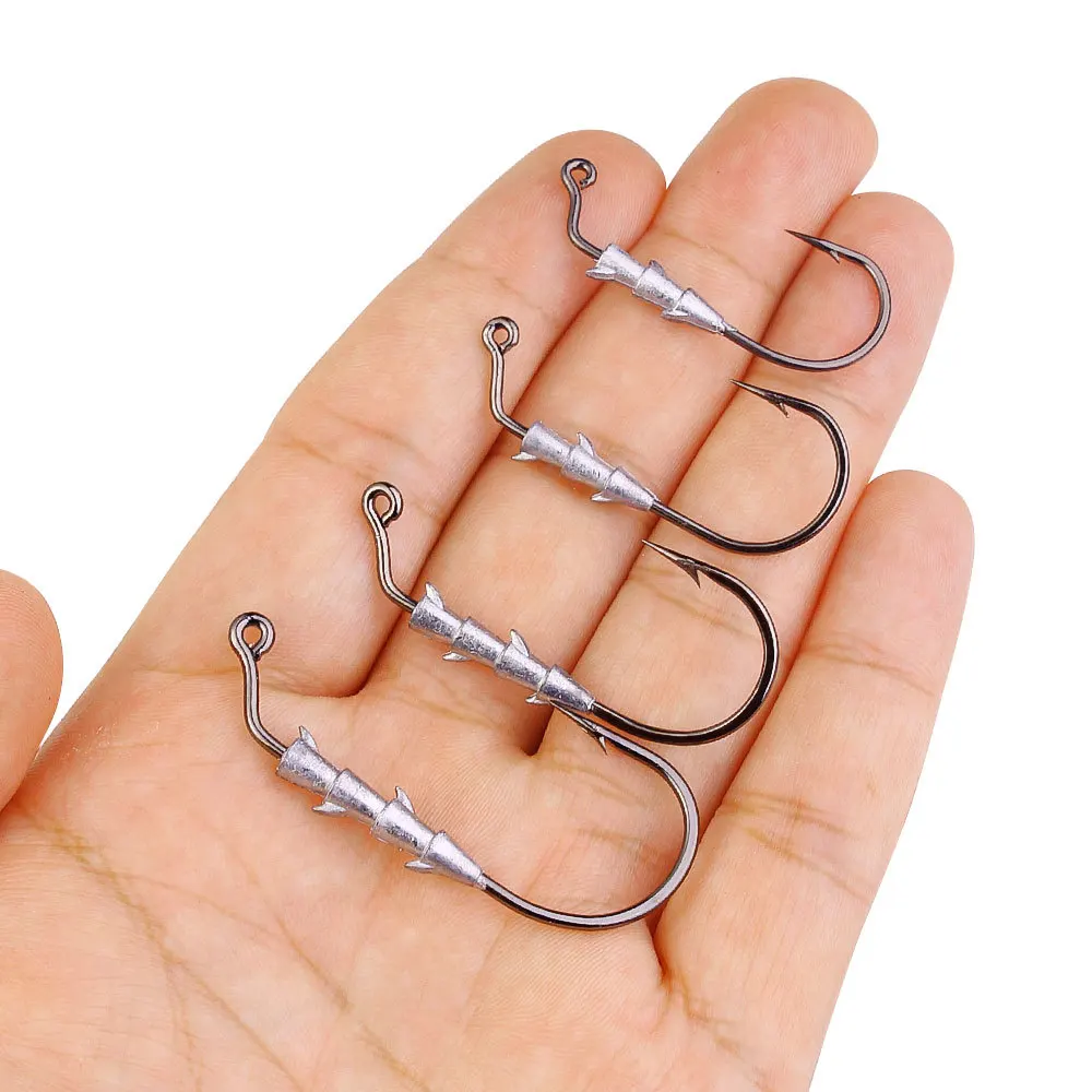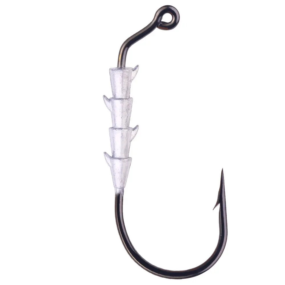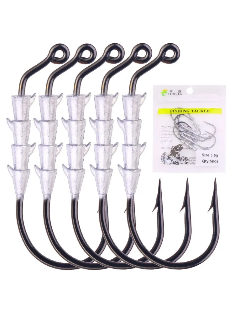 Anzuelos de pesca de gusano con peso antideslizante, aparejos de pesca al aire libre, anzuelos con cabeza de plantilla para señuelos de plástico blando, anzuelos de manivela con púas, 5 uds.