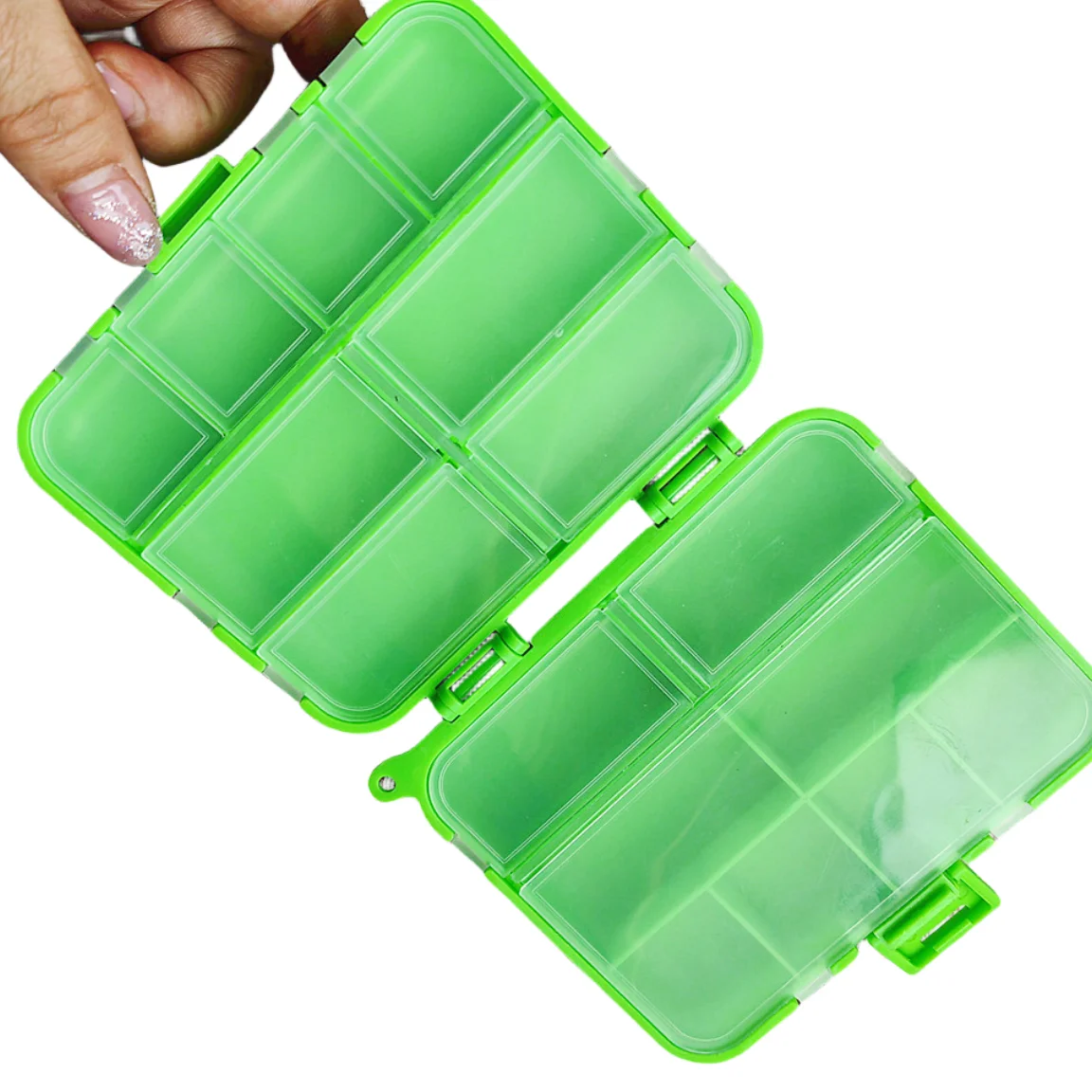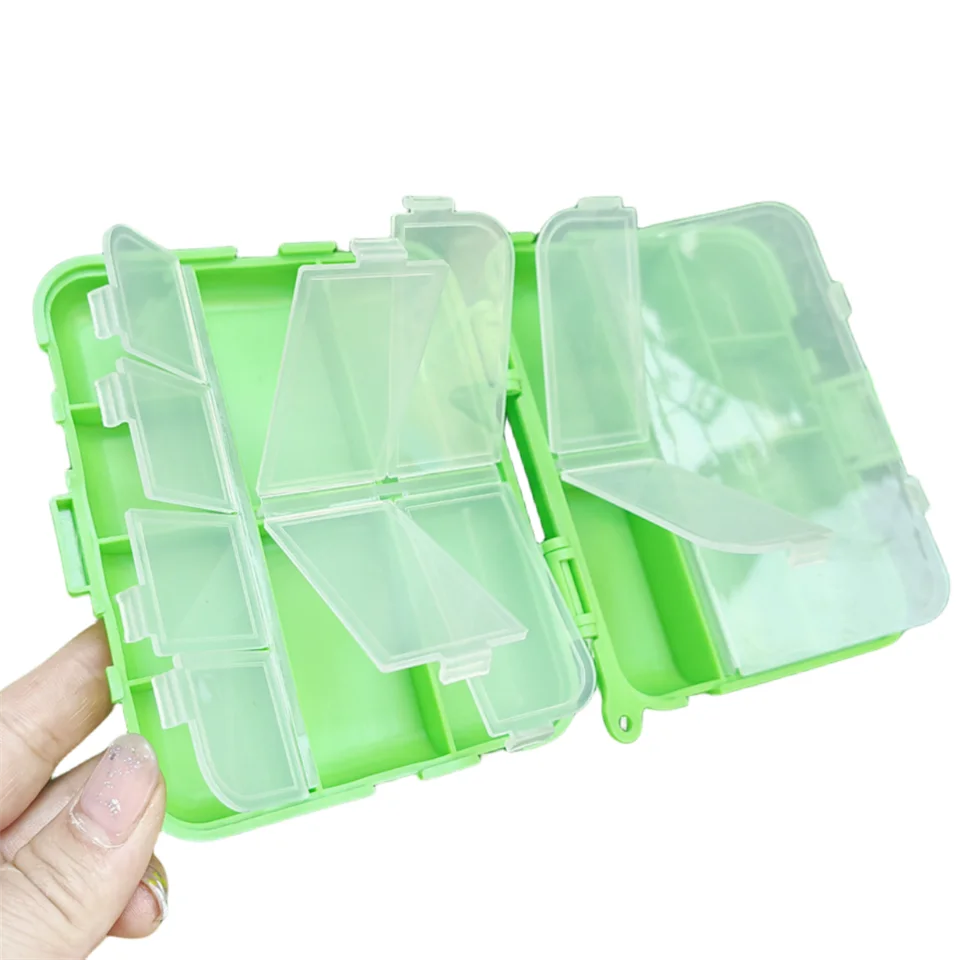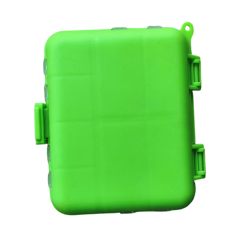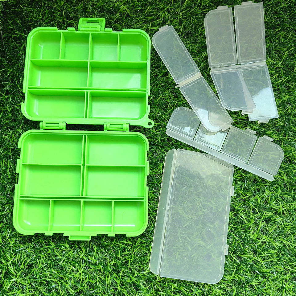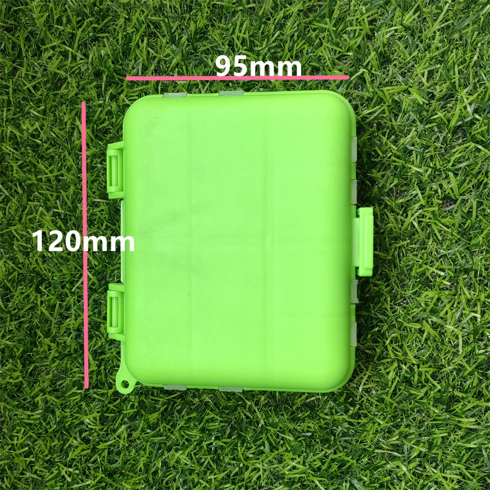 Anzuelos de pesca impermeables, caja de almacenamiento de herramientas de cebo, accesorios de pesca con rejillas independientes, color negro y verde, 1 unidad