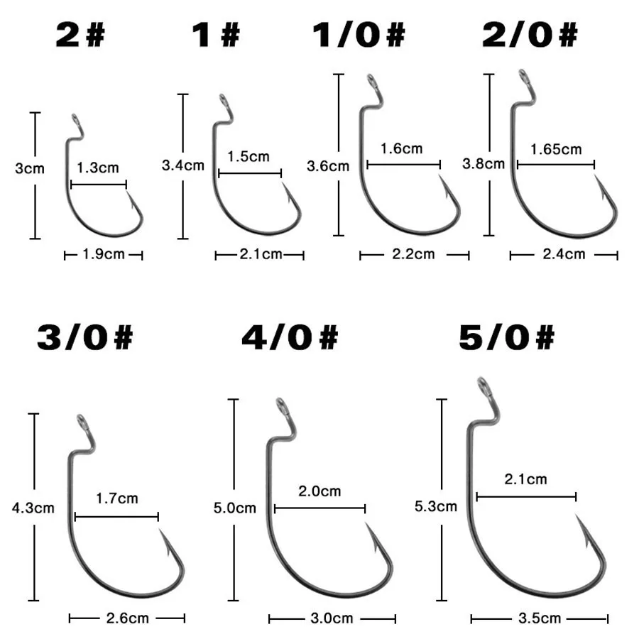 Característica: Cantidad: 50 piezas tamaño: 5/0# 4/0# 3/0# 2/0# 1/0# 1# 2# 4# 6# Notas: Debido a que la medición manual tendrá un error de 1 a 2 cm, es un fenómeno normal. Debido a la diferente resolución de la pantalla, la imagen puede ser ligeramente diferente del color real, los amigos propuestos no disparan, ¡gracias!
