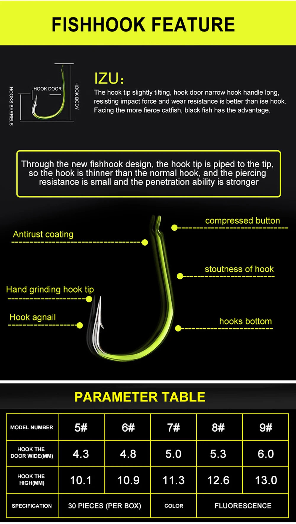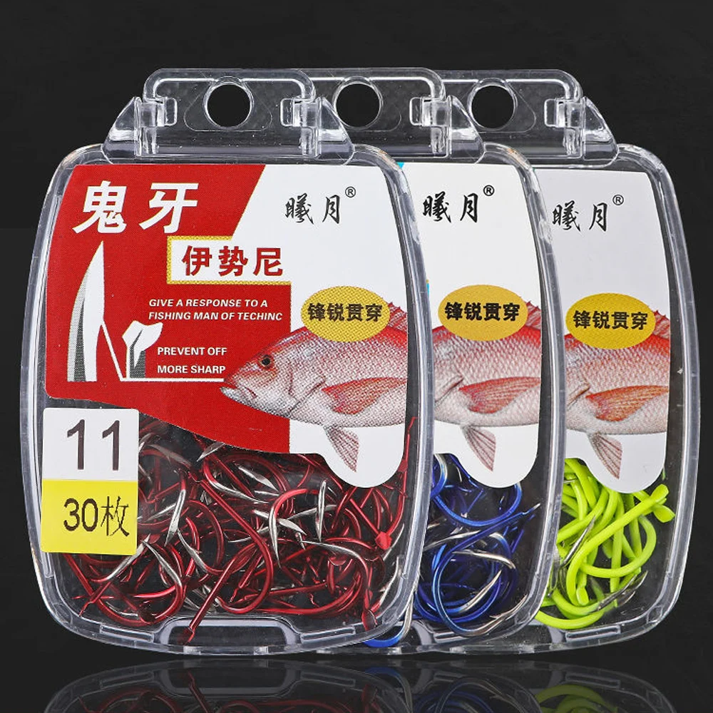 Anzuelos de pesca japoneses de acero alto en carbono, 30 unids/caja, anzuelos de gusano, Isani con púas, carpa, agua salada, 3 #-13 #
