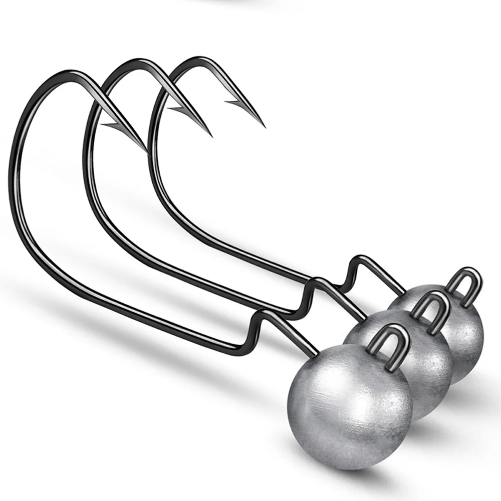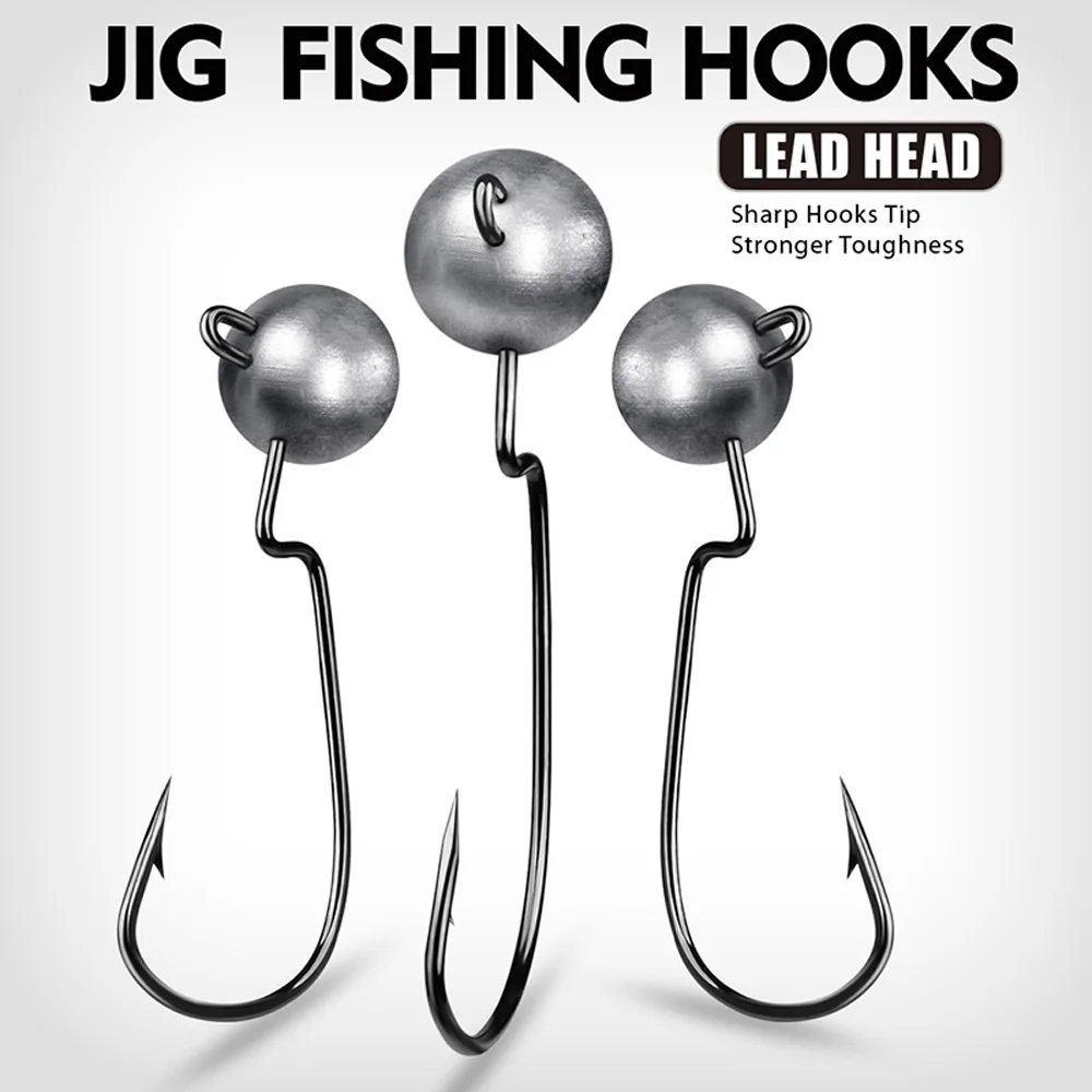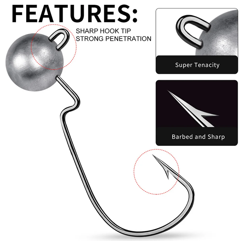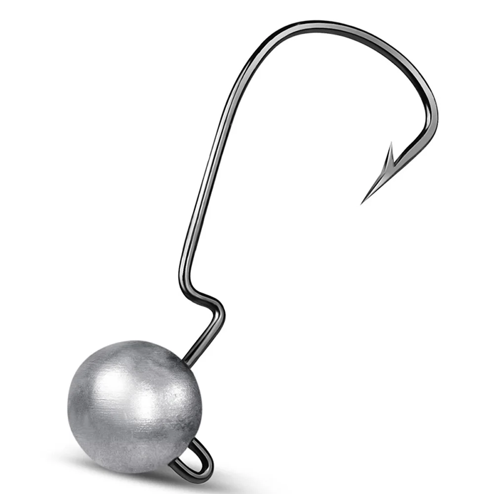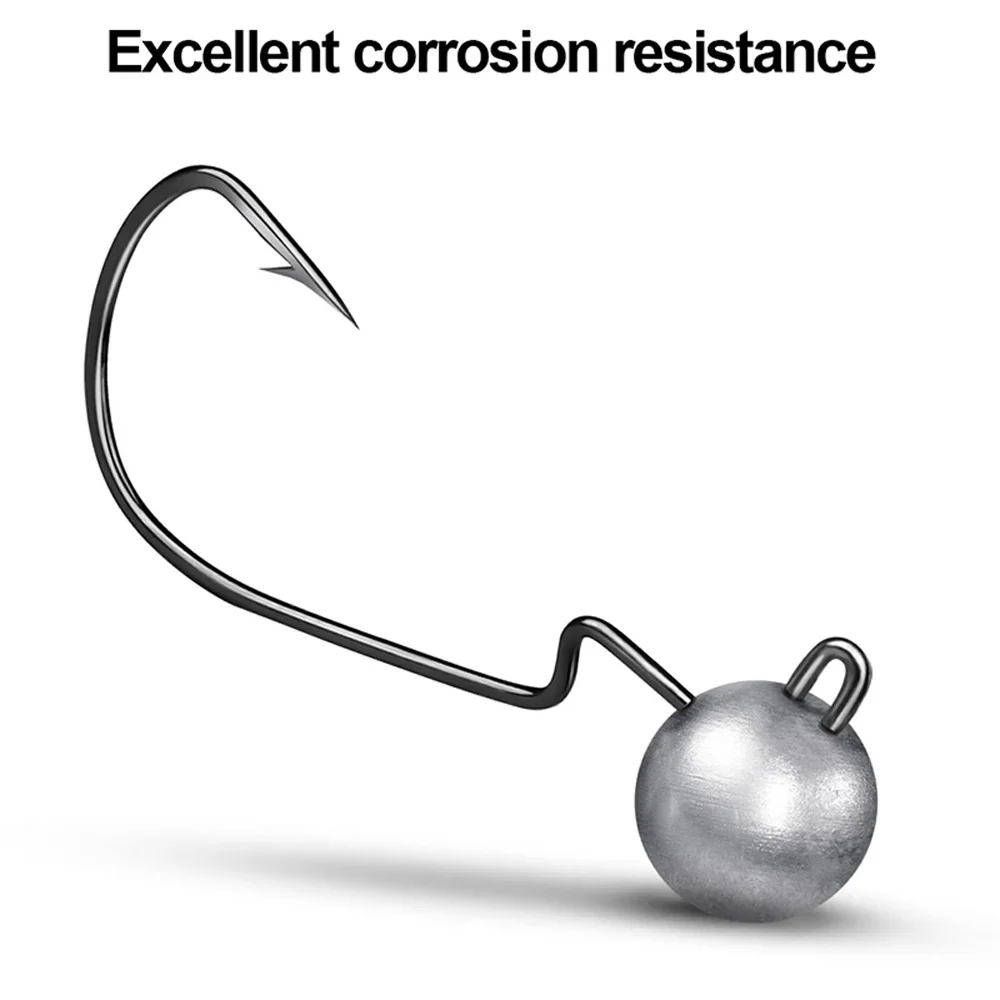 Anzuelos de pesca Jigging con cabeza de Metal, peso de 3,5/5/7/10g, anzuelos de pesca Offset de manivela ancha, señuelo suave, aparejos de pesca de lubina con púas, 5 uds.