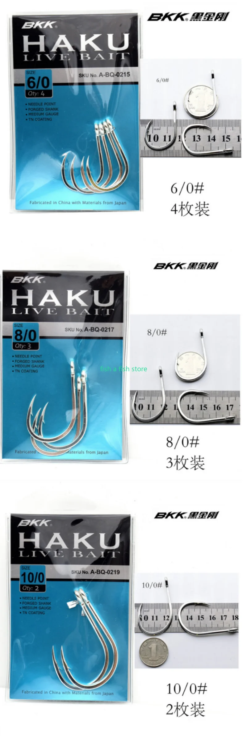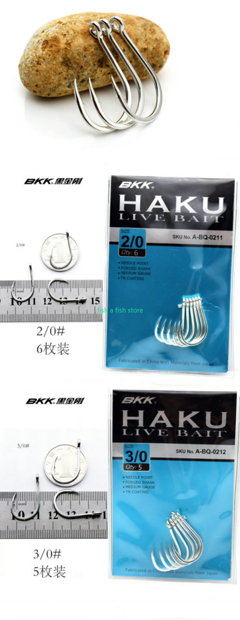 Los anzuelos para cebo vivo parecían más pequeños que un 10/0 y no se veían tan resistentes. Además, solo 2 por paquete. Más barato en el Reino Unido: no volvería a comprarlo.
