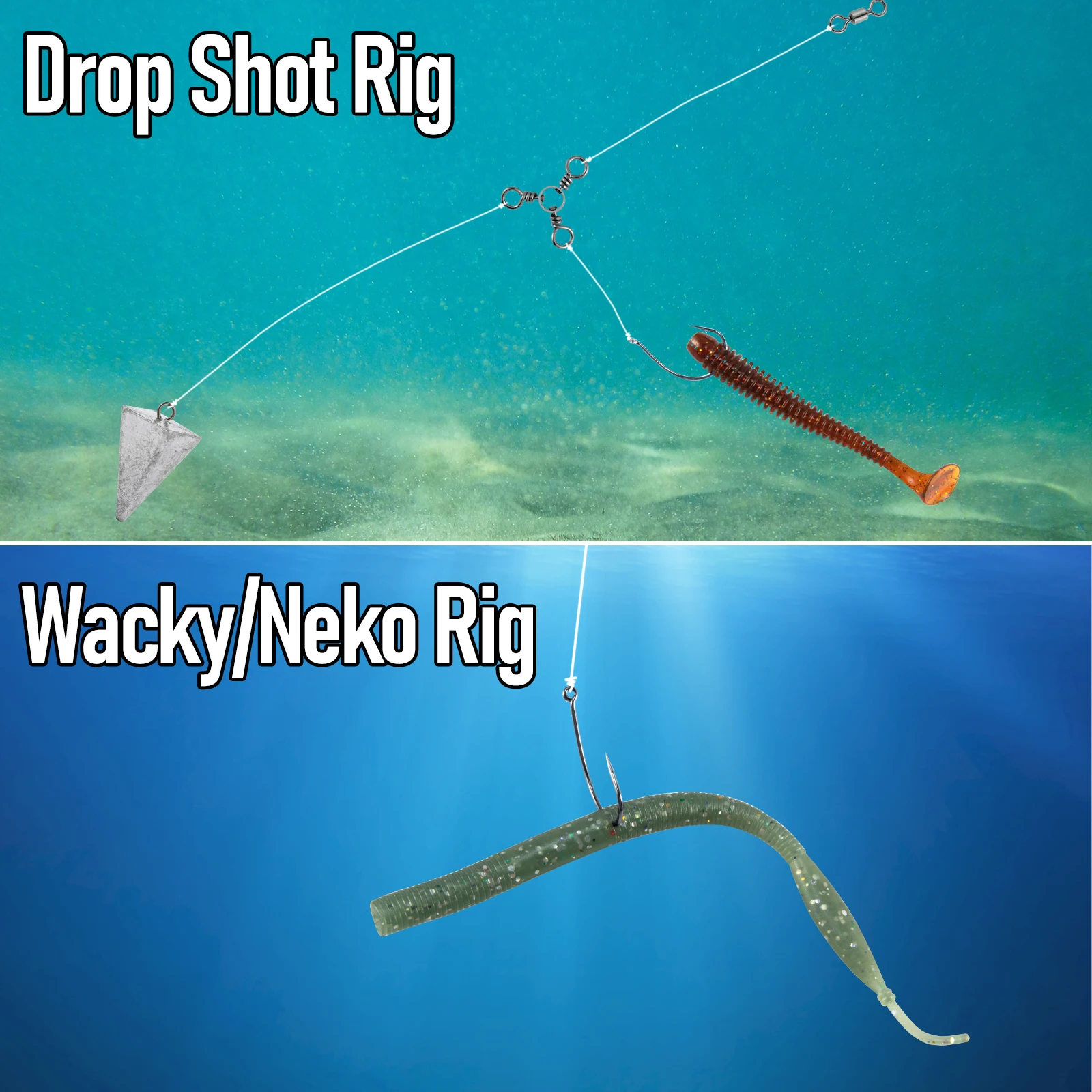 DESIGN: The Drop Shot Hook is specifically designed to display a suspended soft plastic or live bait and trigger fish into biting. Ideal for drop shot rig.