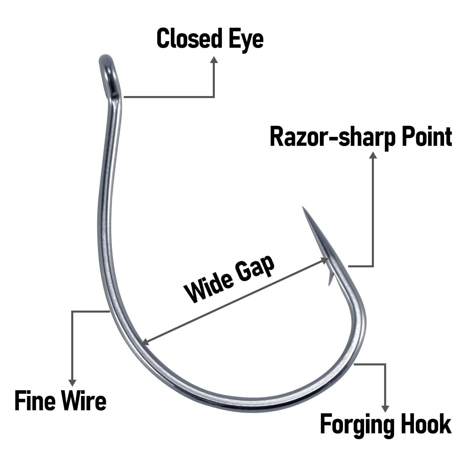PERFORMANCE: With a razor-sharp point, the fishing hook will hook anything that even gets close to your bait. Featured a precisely angled eyelet, you can put your soft plastic in a perfectly horizontal position to tempt wary bass into biting.
