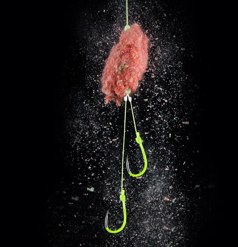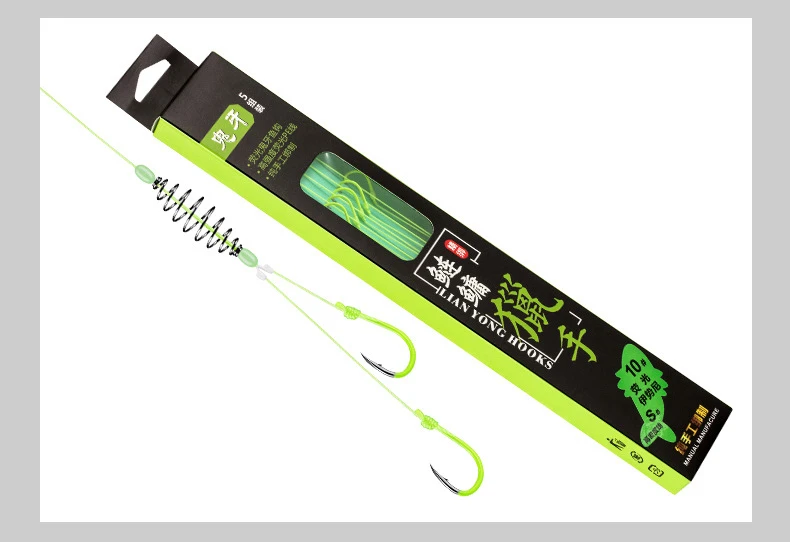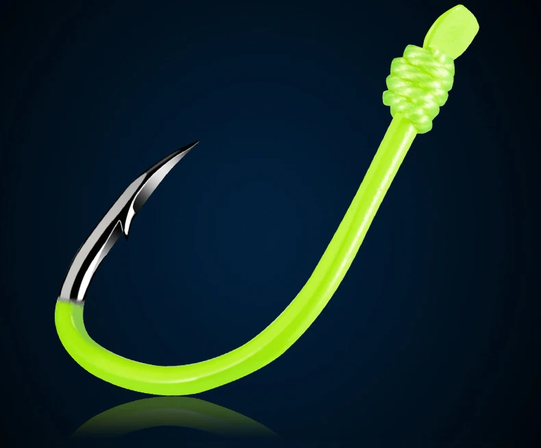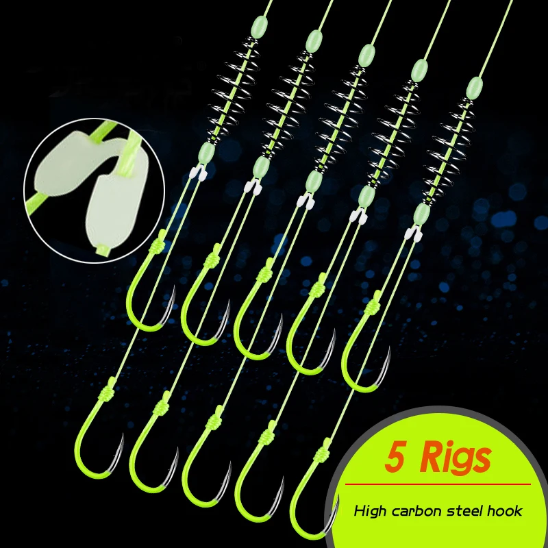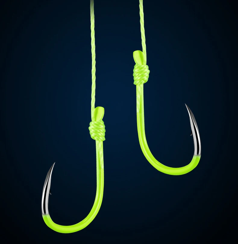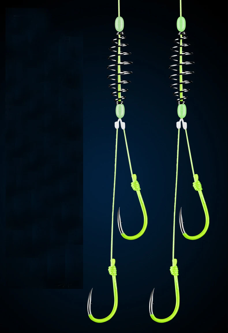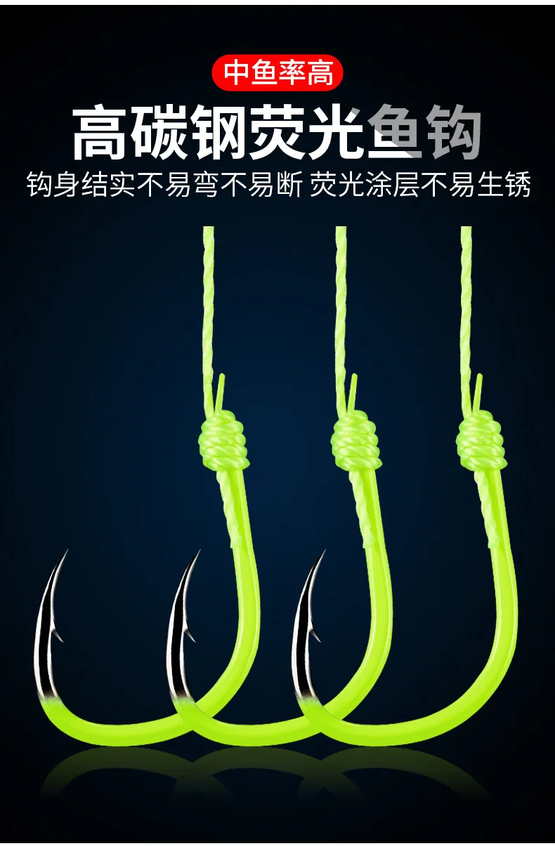 Anzuelos de pesca luminosos de acero al carbono, accesorios de doble púas con línea de PE, 5 pares