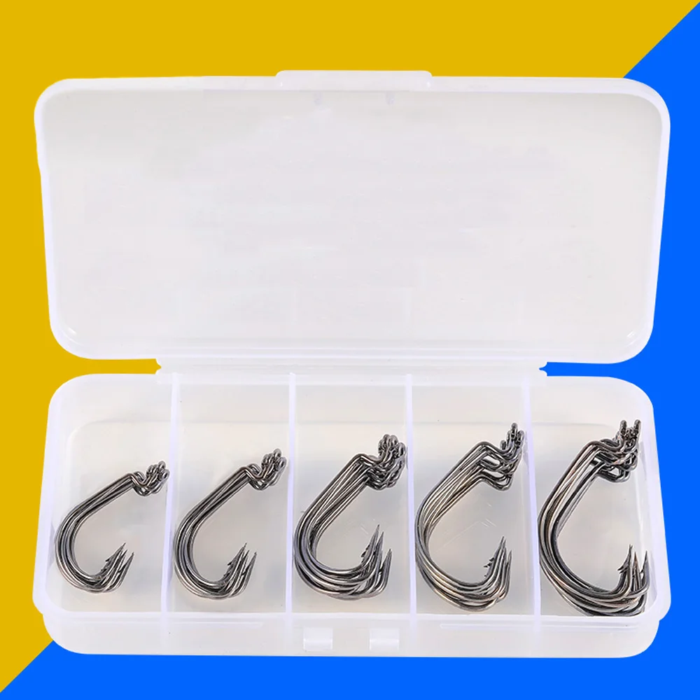 Anzuelos de pesca de manivela ancha de 50 piezas, anzuelo de acero al carbono Offset, tamaño 3/0 #-2 #, púas, para carpa, señuelo de cebo de gusano blando