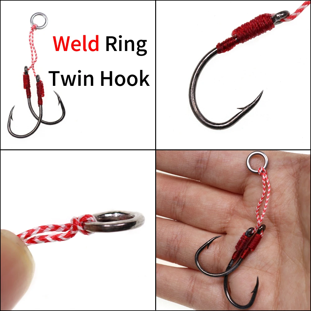 10 pares de anzuelos de pesca de mar con anillo dividido/soldadura 1/0 2/0 3/0 4/0
