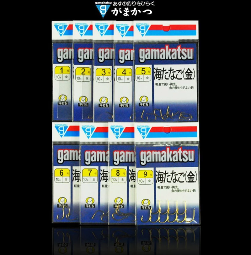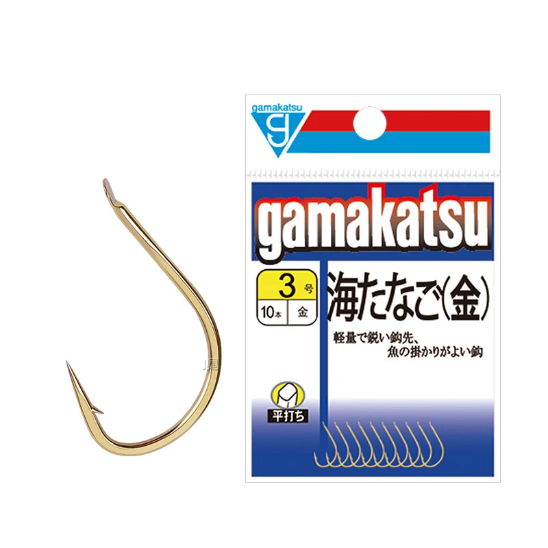Anzuelos de Pesca de Mar dorado Gamakatsu, acero de alto carbono, anzuelos afilados, señuelo de púas, barco, gusano de playa, hecho en Japón