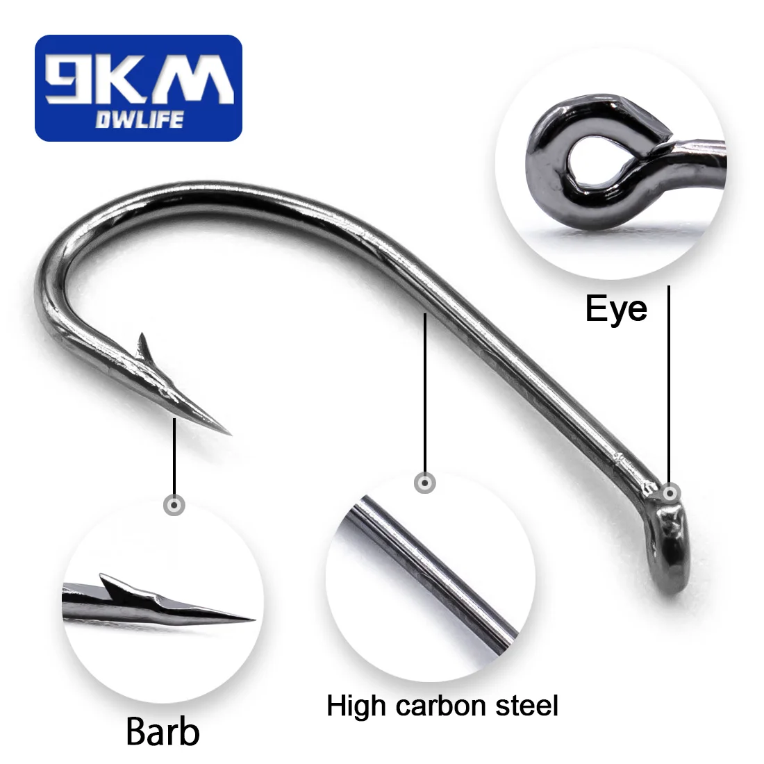 Diseño profesional, materiales de alta calidad y tecnología de fabricación: Hecho de alambre de acero de alto carbono de gran calidad especialmente diseñado para anzuelos de pesca. Químicamente afilado, súper afilado y súper fuerte.