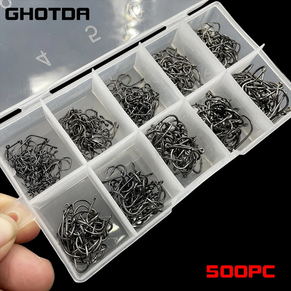 Juego de anzuelos de pesca de 500, anzuelos de púas de acero de alto carbono para agua salada, accesorios de pesca de agua dulce