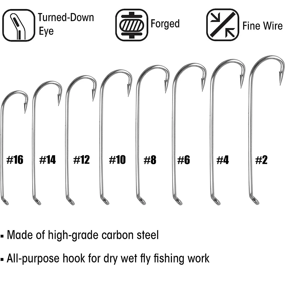 2. Forjado, ojo inferior, mini-púas, alambre de tamaño estándar, vástago largo 1X, curva redonda, espacio ancho, Punta químicamente afilada