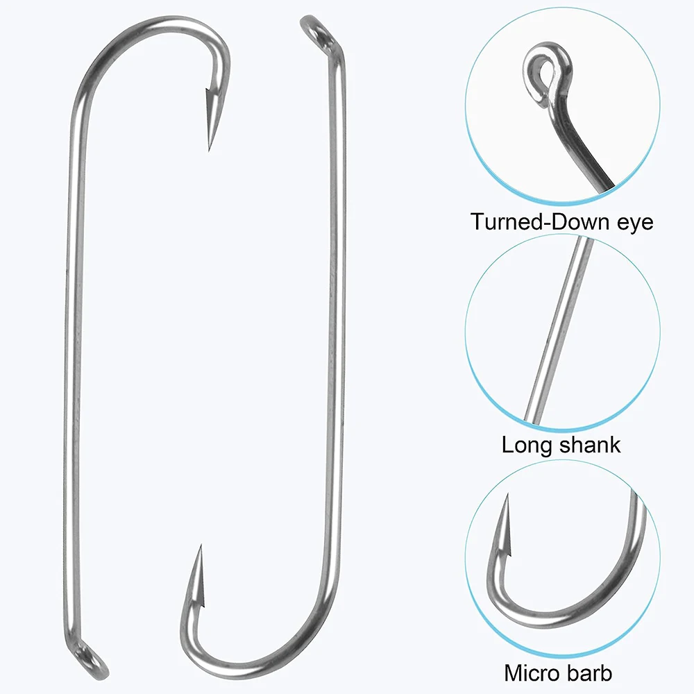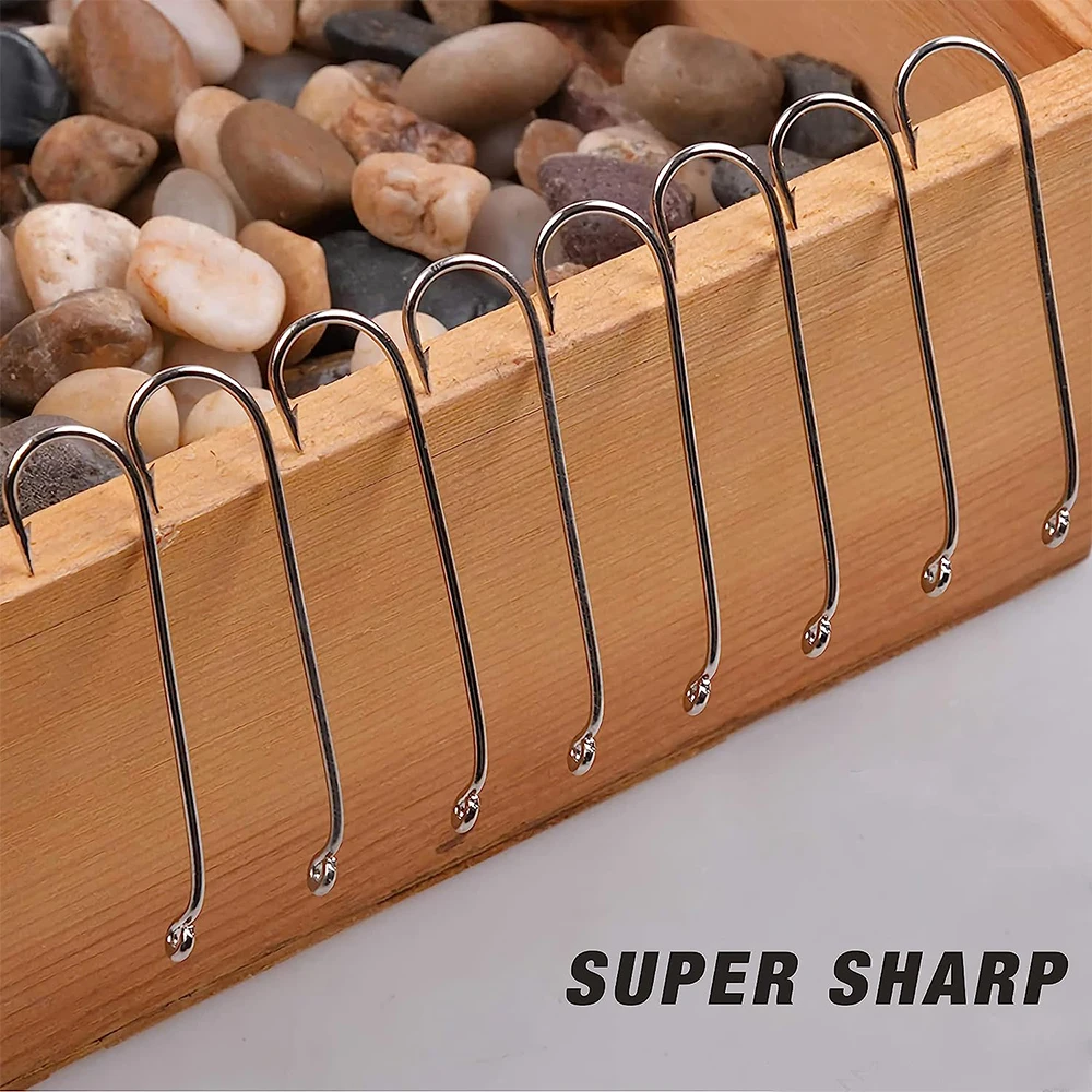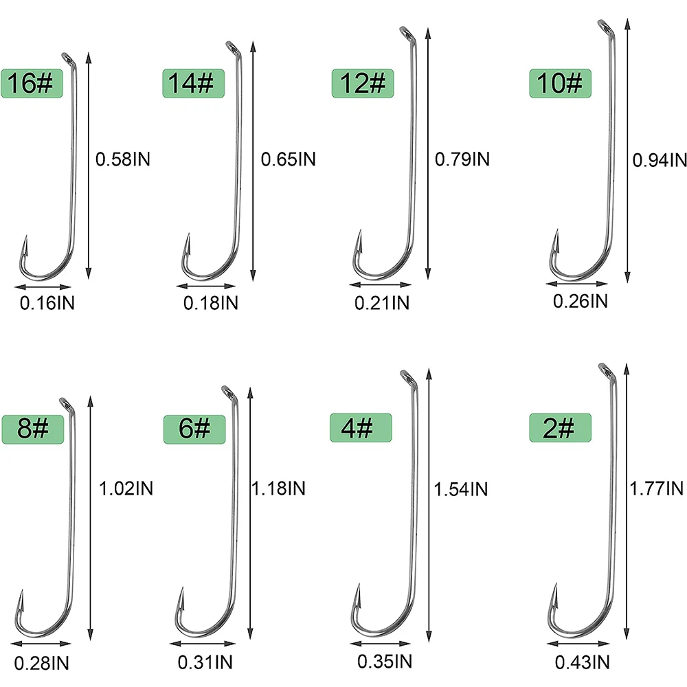 3. Ganchos de atado de moscas de vástago largo con diseño de púas, apuñala al pez rápidamente, la punta del anzuelo es súper afilada, no es fácil de desacoplar
