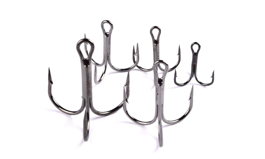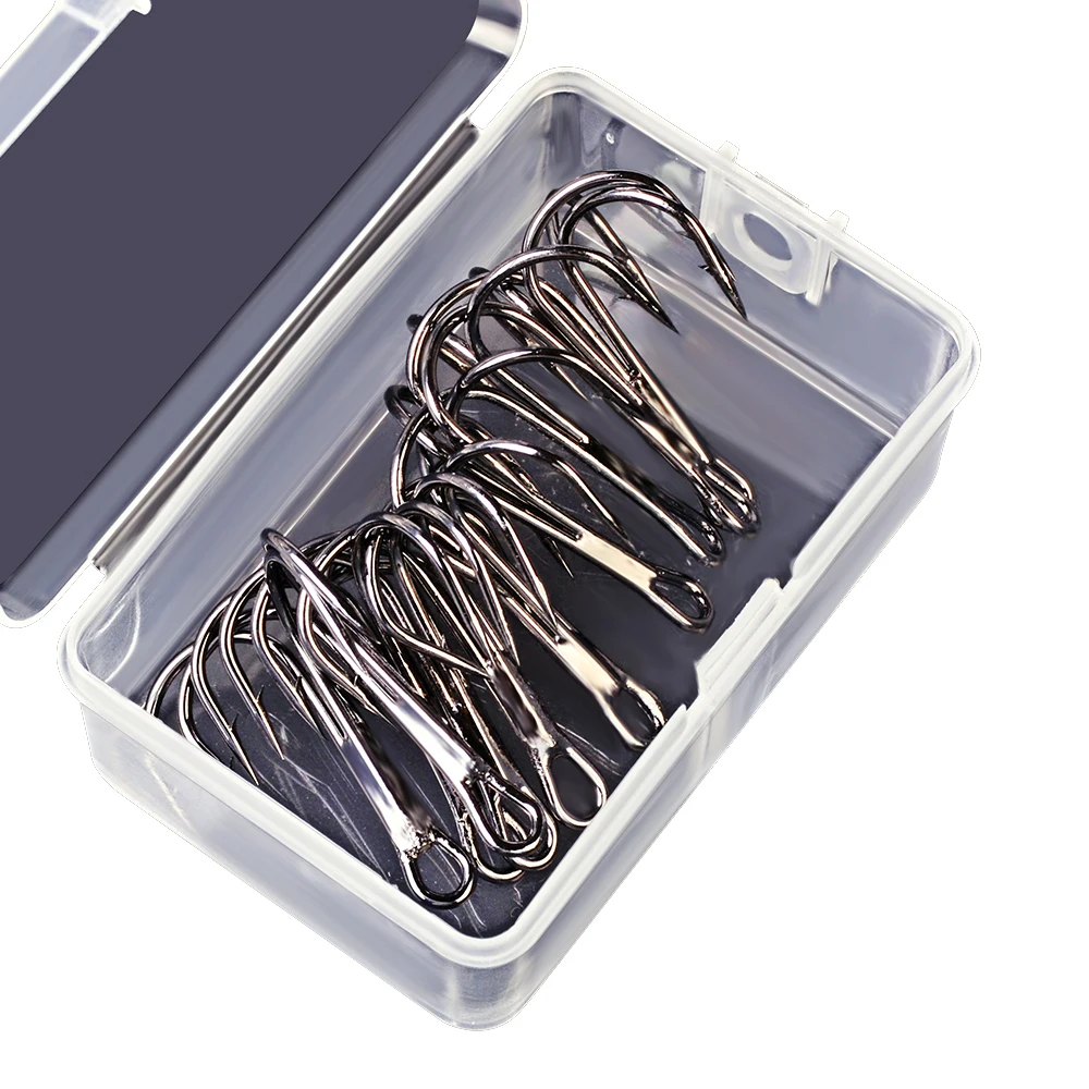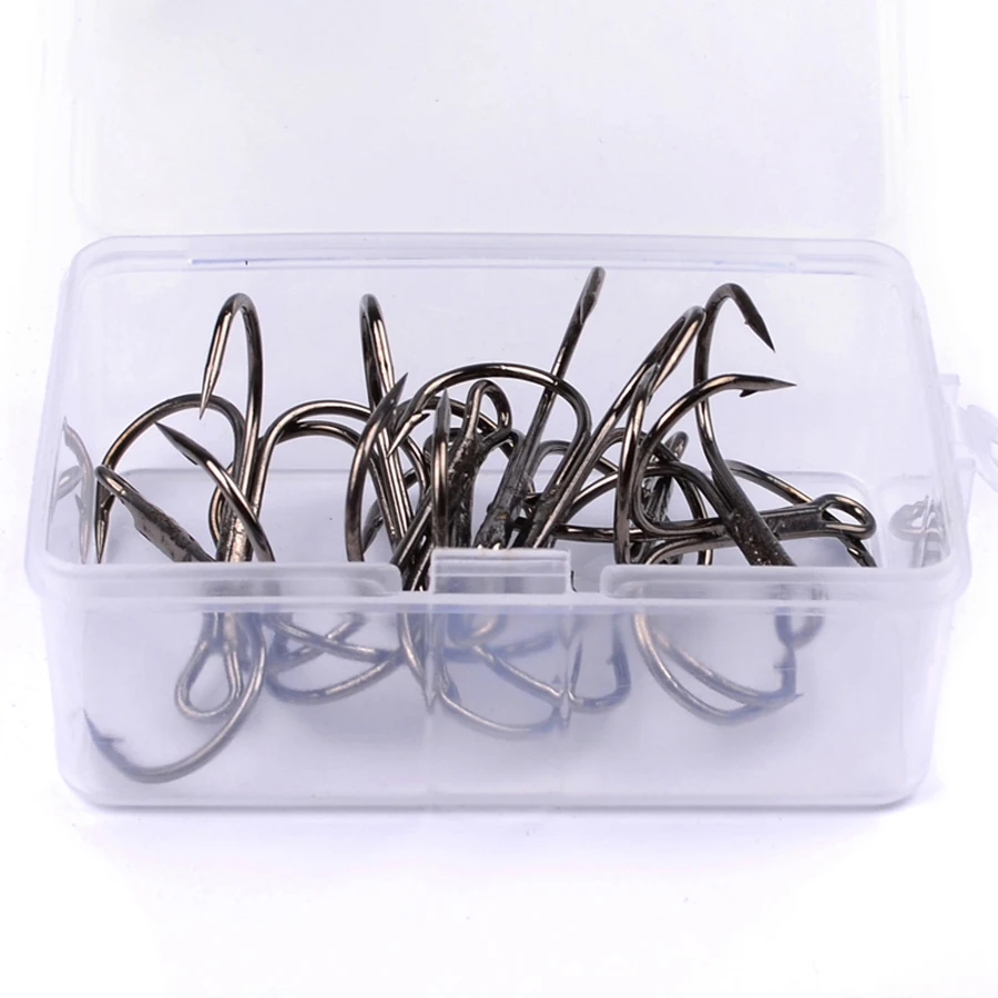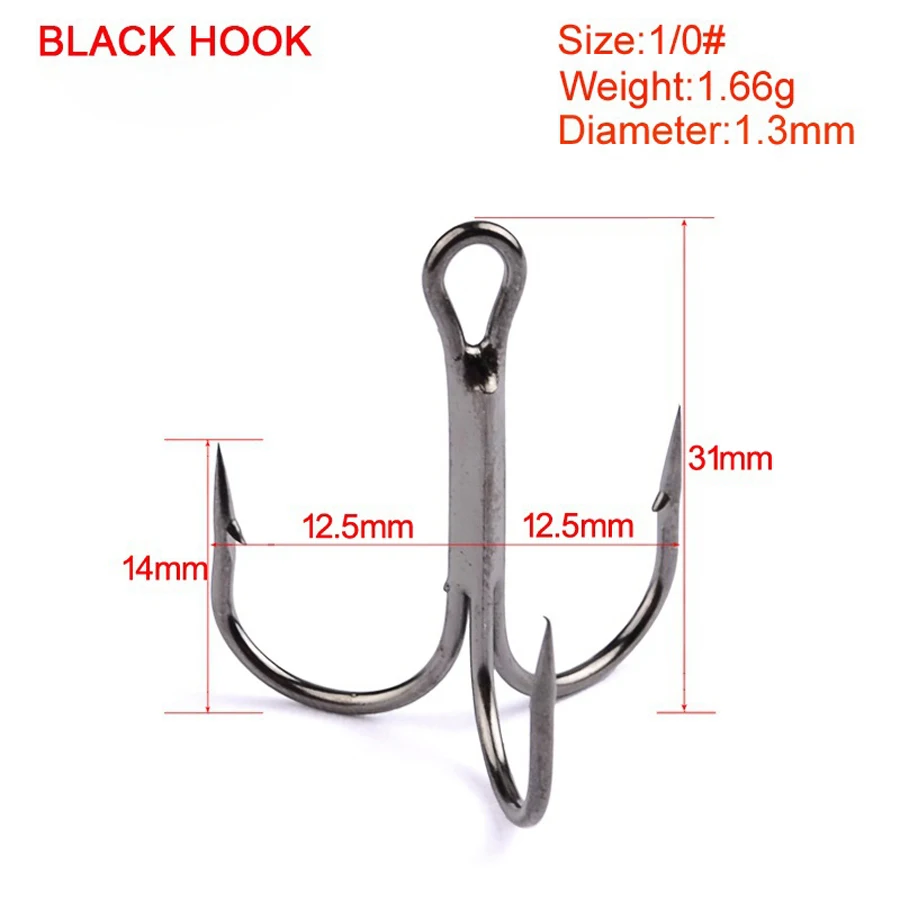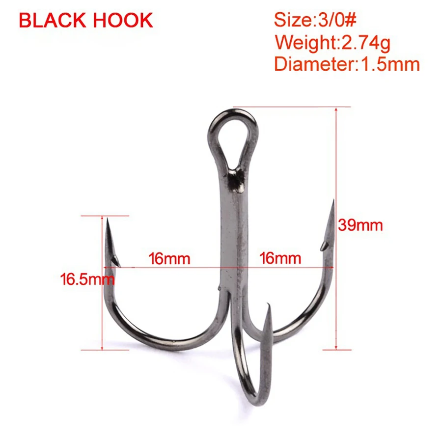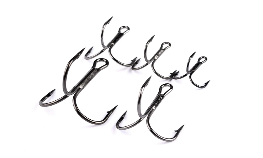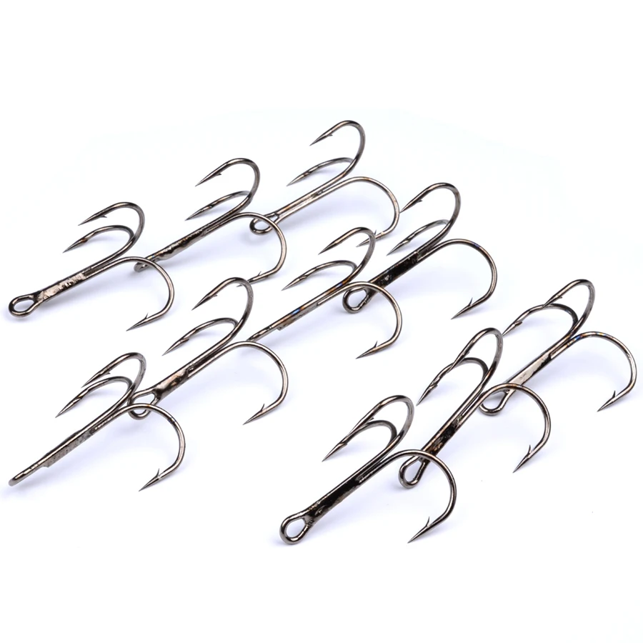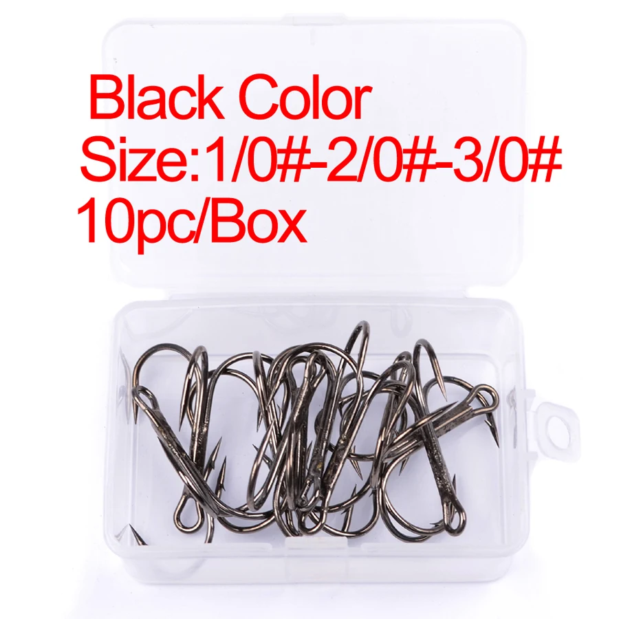 Anzuelos de pesca de níquel, 10 unids/lote, 1/0 #2/0 #3/0 #, anzuelos triples de acero de alto carbono, aparejos de pesca de pescado negro, gancho de alta resistencia para lubina