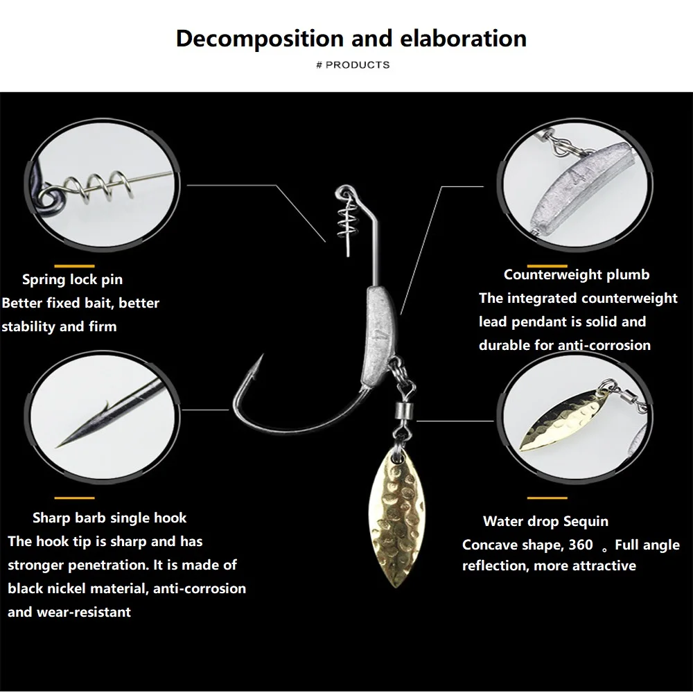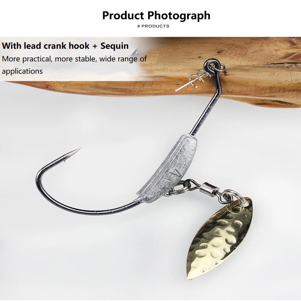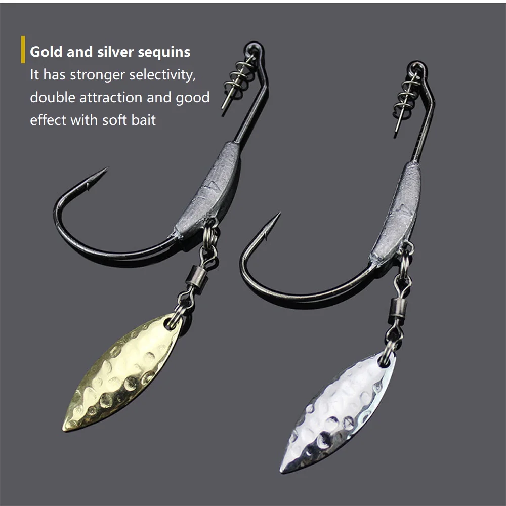 Anzuelos de pesca Offset, 4g, 5g, 7g, manivela con cuchara, cebos blandos, plomo, cuchara de Metal, lentejuelas