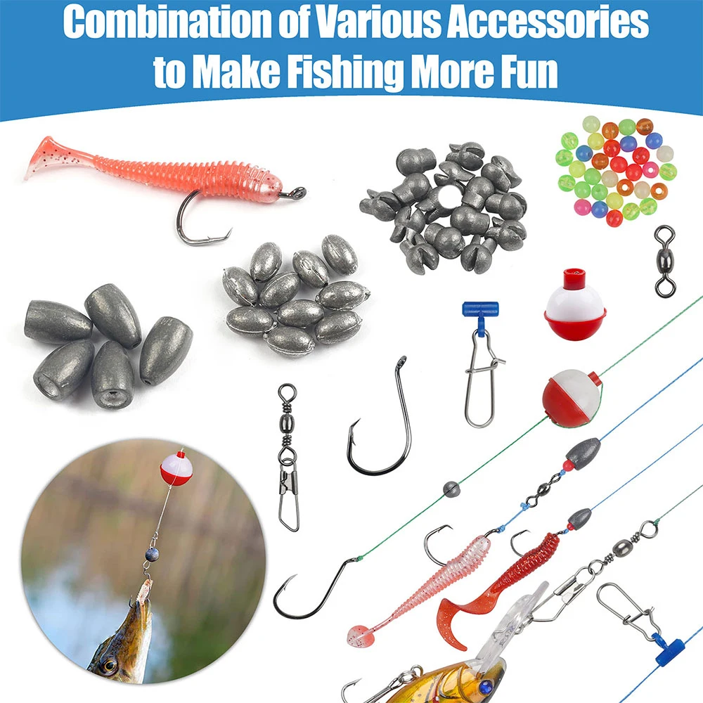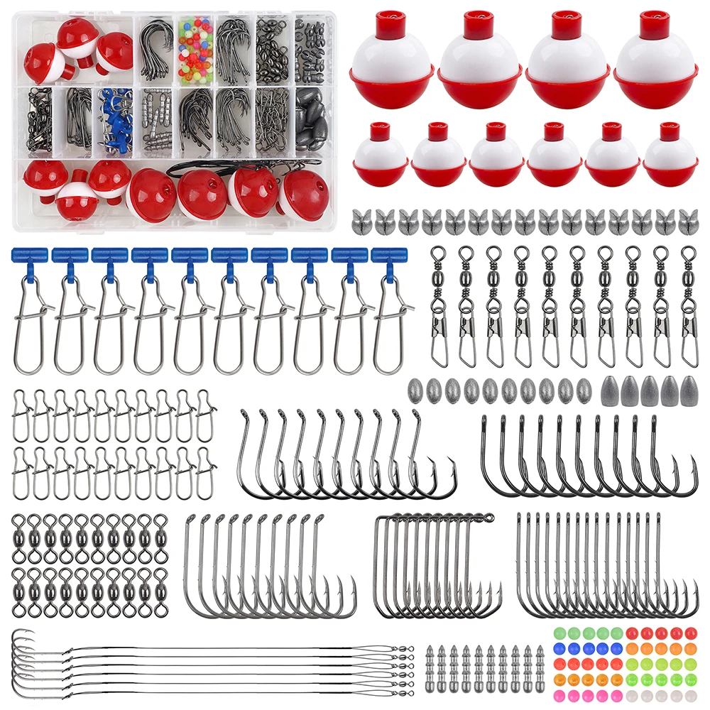 1. 【MATERIAL FIABLE】 Los anzuelos de pesca de acero al carbono de alta calidad giratorios y las plomos de peso muestran una alta resistencia y una fuerte resistencia a la corrosión; los bobbers de pesca duraderos no se deforman, mantienen los cebos fuera del Fondo y provocan que los peces depredadores golpeen.