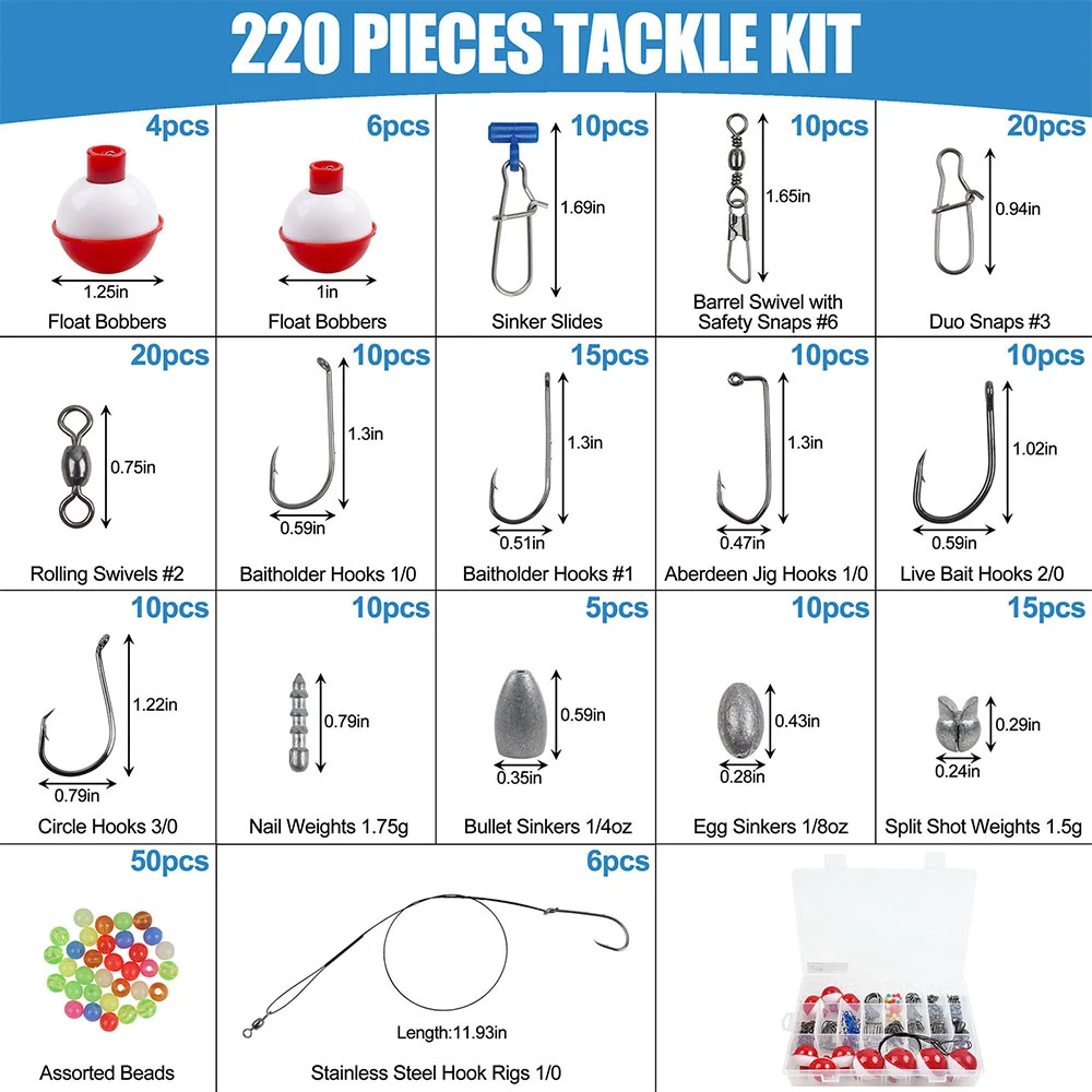 220 herramientas de pesca en caja